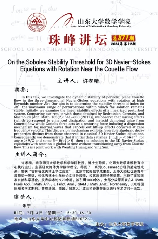 下一条:WilliamHill中文官方网站珠峰讲坛第870期:Stability and Large-Time Behavior of Compressible MHD Flows Near a Background Magnetic Field