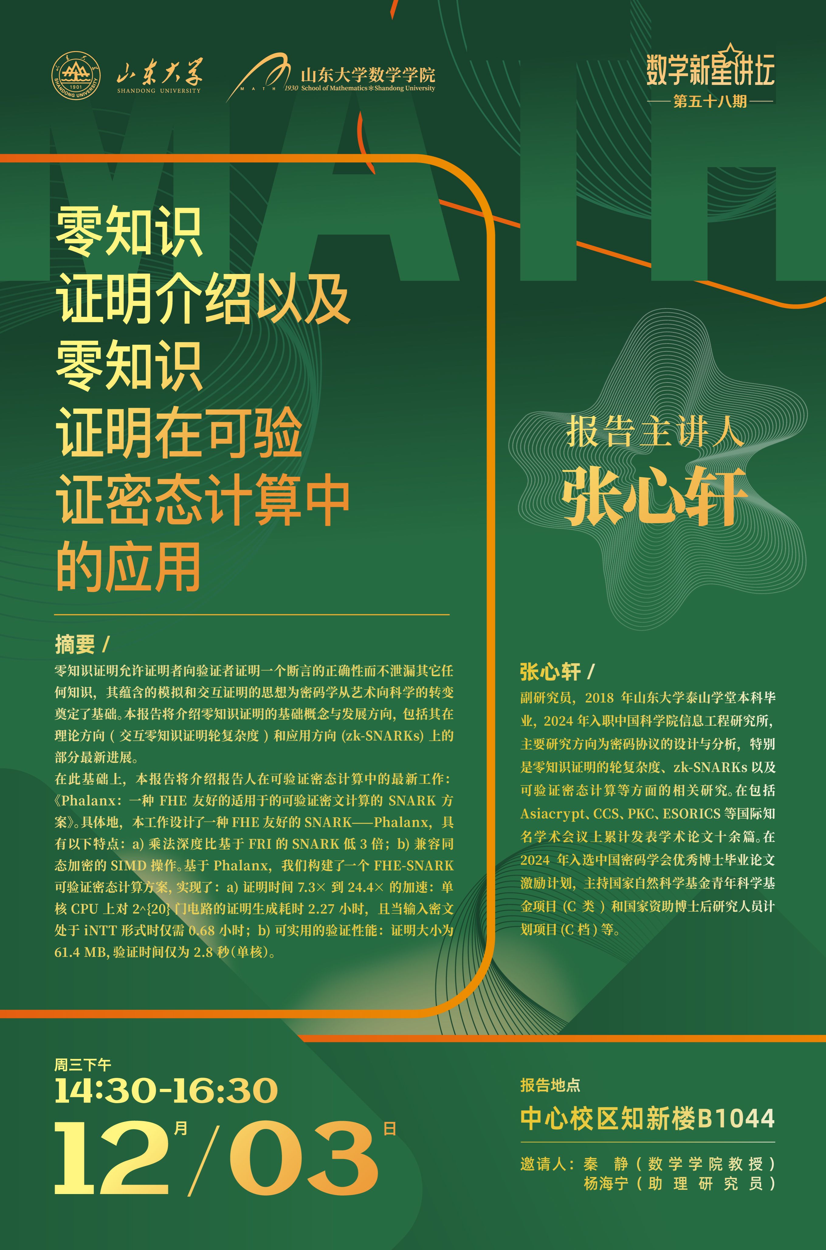 下一条:WilliamHill中文官方网站新星讲坛第57期:Introduction to Zero-Knowledge Proofs