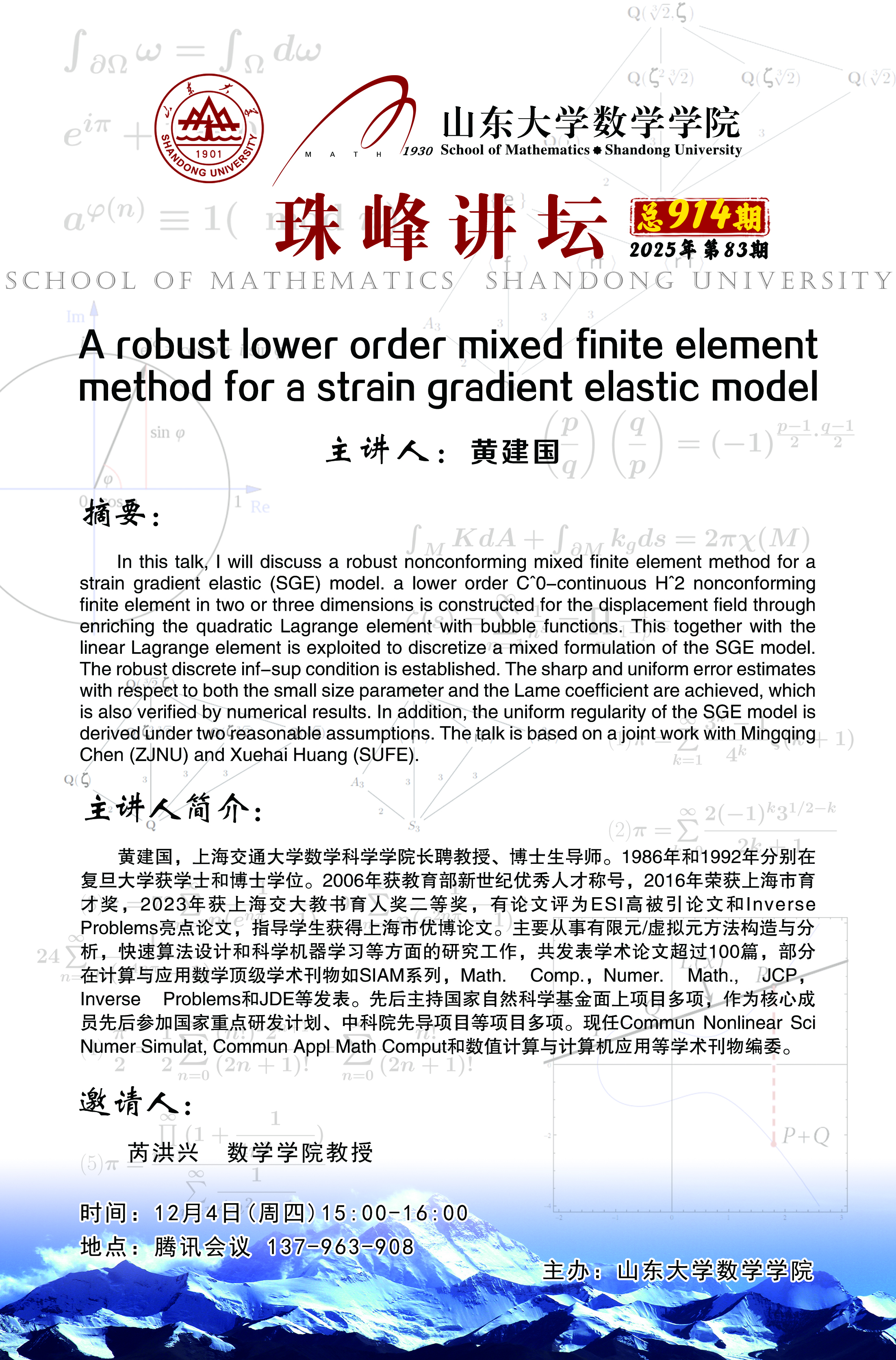 上一条:WilliamHill中文官方网站95周年院庆系列报告第20期:计数几何与高亏格镜像对称简介