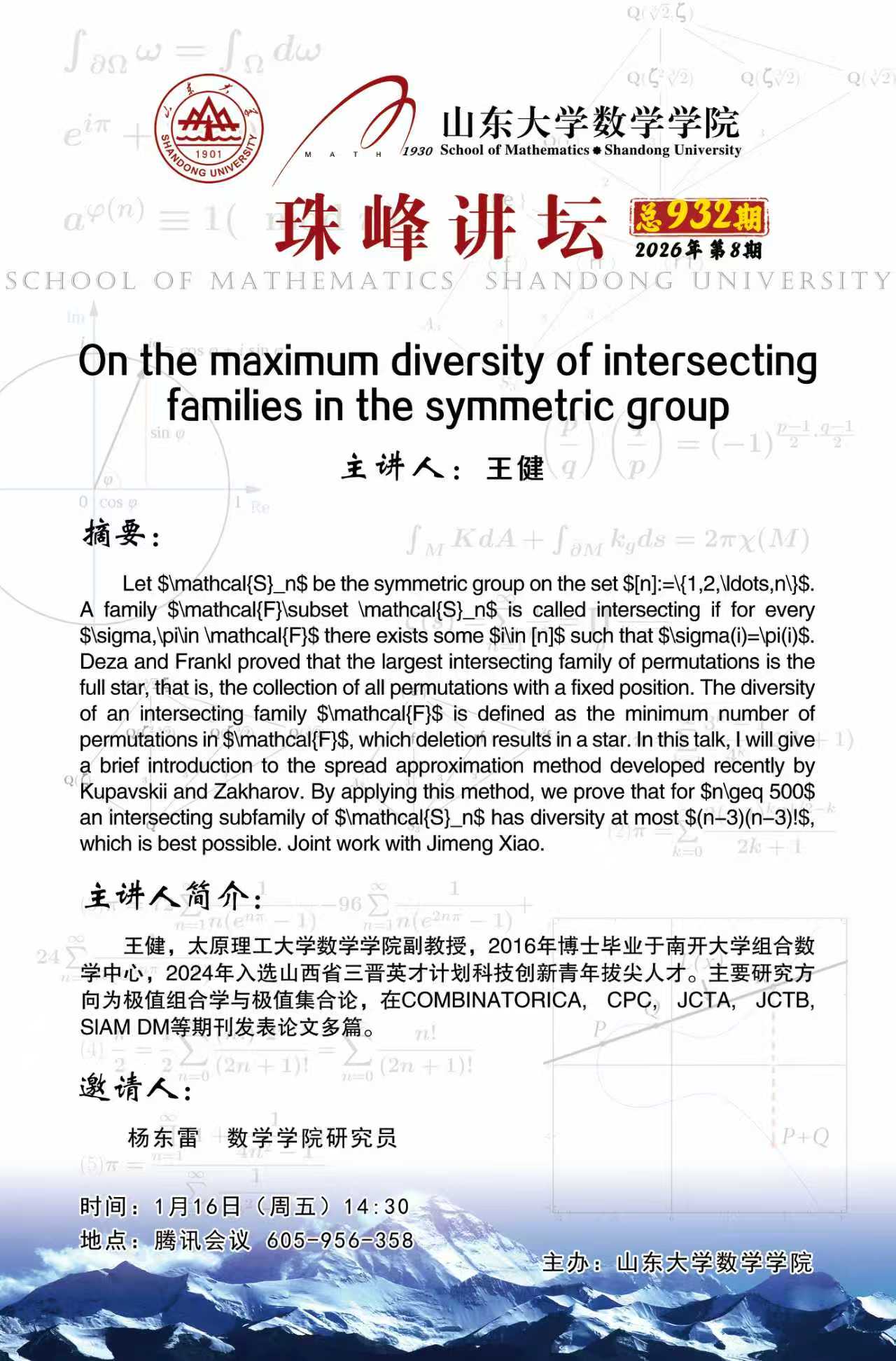 下一条:WilliamHill中文官方网站珠峰讲坛第931期:Berge-Fulkerson conjecture for some snarks