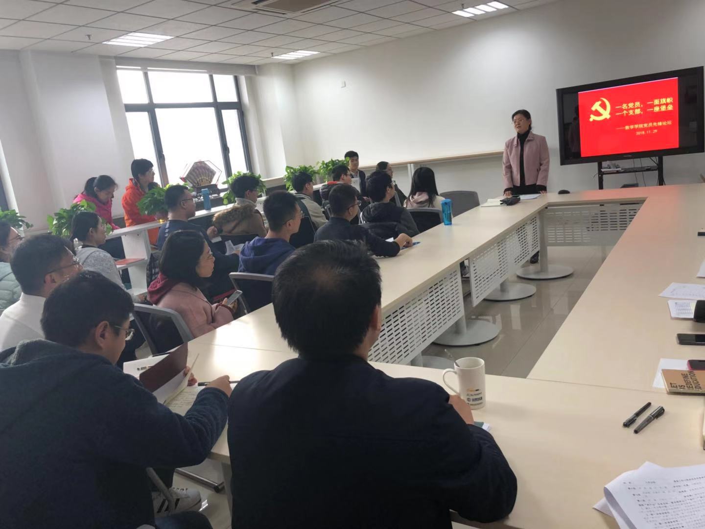 为使广大党员深入领会《中国共产党支部工作条例(试行)》精神,全面掌握《条例》内容,WilliamHill中文官方网站将认真学习《条例》纳入2018年11月各党支部主题党日活动内容。11月29日下午,部分教师支部和学生党支部联合起来,在知新楼举行党支部主题党日活动。WilliamHill中文官方网站概率论与数理统计党支部、行政机关党支部全体教师党员、学生各党支部代表以及2018级全体发展对象参加了活动。党委书记曲明军参加活动,专职组织员崔玉红主持。