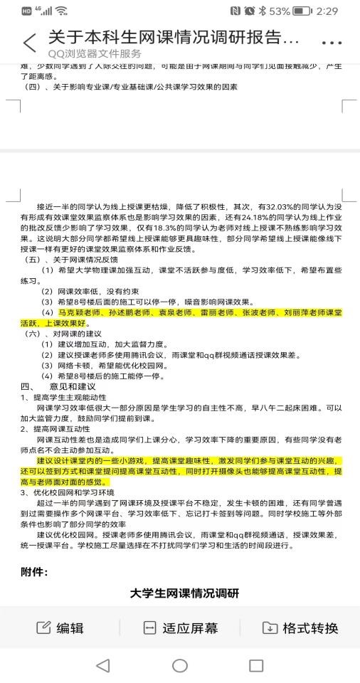 马克颖老师则是不断完善授课方式,例如增加了点名、提问等互动内容,减少学生的枯燥感。每次上课,他会提前二十分钟在qq群里发布接龙,并安排十名同学在上课时打开摄像头。学生一致反映马老师的课堂气氛活跃,同学们能够集中注意力,学习效果也很好。马克颖老师还因此受到了能动学院的点名表扬!