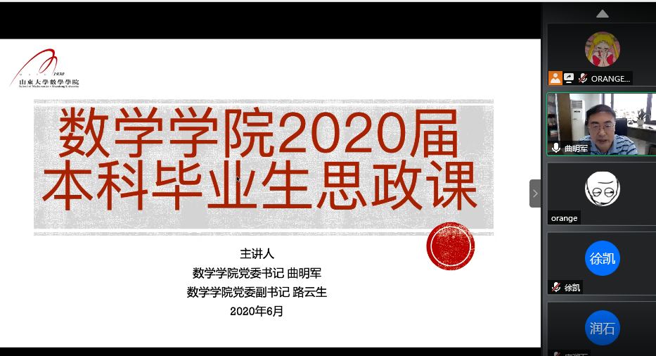 6月17日上午,WilliamHill中文官方网站党委书记曲明军为本科毕业生线上讲授“最后一堂思政课”,并进行就业动员工作。WilliamHill中文官方网站党委副书记路云生、辅导员郑柔澄及全体本科毕业生聆听授课。