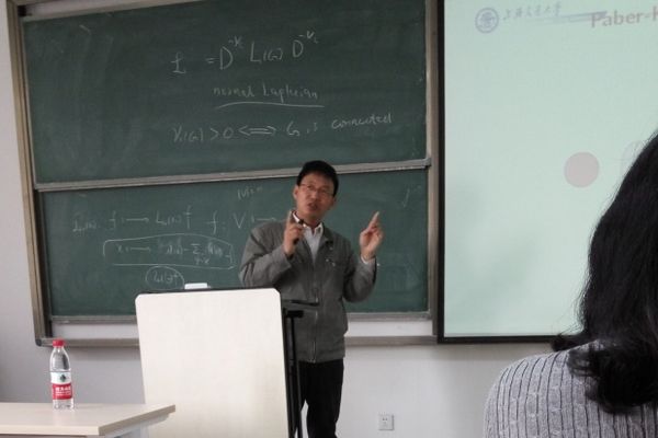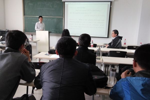 4月8日上午,应williamhill英国中文官网颜谨教授邀请,南京大学陈耀俊教授和上海交通大学张晓东教授来williamhill英国中文官网,分别作了题为“The Dirichlet eigenvalues of graphs and the Faber-Krahn Inequality”和“Polarity graphs and Ramsey number R(C4, K1,n)”的学术报告。报告由WilliamHill中文官方网站吴建良教授主持,williamhill英国中文官网和山东师范大学WilliamHill中文官方网站的部分老师和研究生参加了此次报告。