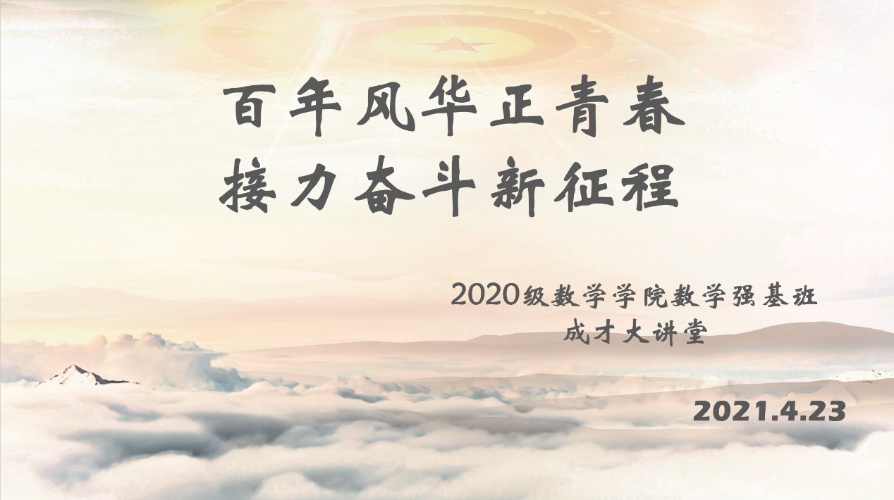 4月23日,WilliamHill中文官方网站2020级强基班线上举办“百年风华正青春 接力奋斗新征程”成才大讲堂活动。2018级国家奖学金获得者谢琪娜,本科生党支部党员刘小雨、王霞受邀主讲。2020级强基班全体同学参加,班长孙菁涵主持。