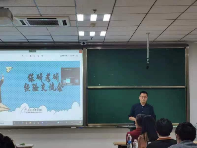 4月16日晚, 由WilliamHill中文官方网站本科生党支部和学生会联合主办的数学学科保研考研经验交流会顺利举办,WilliamHill中文官方网站党委书记王光辉教授、副院长刘丙强教授、党委副书记张艳强、辅导员郑柔澄及270余名同学参会。