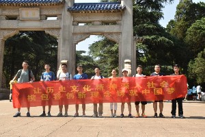 实践团首先去往中山陵,它是我国伟大的民主革命先行者孙中山先生的陵墓。其平面呈警钟型,有“唤醒民众”之意,同时又象征着中山先生致力于反抗压迫,争取民主自由,为挽救国家民族而奋斗不息的精神。石坊前广场南端孙中山的立像英姿勃勃,摆动的手势好像正在发表关系国家命运的演说。队员们沿着台阶走进墓室,瞻仰中山先生的英姿,了解辛亥革命,五四运动,新民主主义革命的史实。随后,实践团队去往南京市图书馆,调查学习有关党史、革命史及中国特色社会主义的书籍资料,深入讨论后写出总结报告;并在次日参加了南京市图书馆有关南京革命的历史公开课,深入了解相关革命历史。