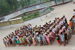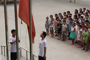 7月17日早上八点整,williamhill英国中文官网赴鲁西南地区支教调研团全体队员和学生在鄄城县董口镇中心完小举行了庄严的升旗仪式。伴随着富有节奏感的入场音乐,各班学生在老师的带领下有序入场。