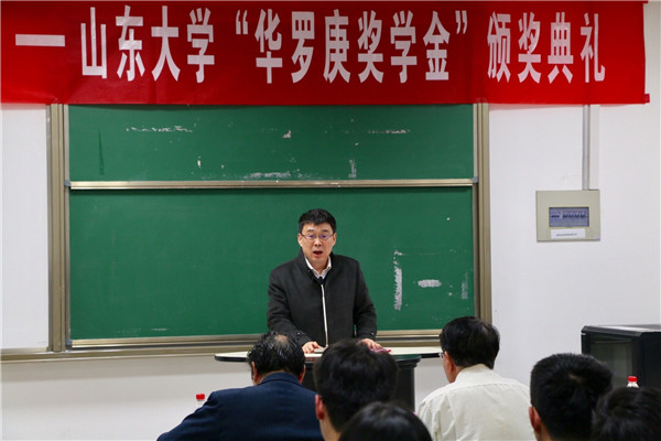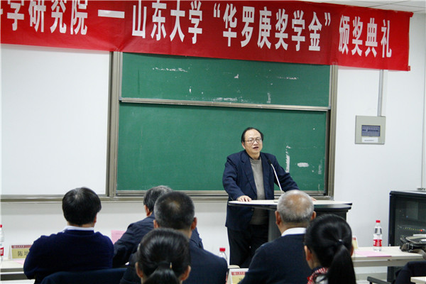 颁奖典礼上,赵炳新教授介绍了williamhill英国中文官网“华罗庚班”的办学特色与建设情况,希望以“华罗庚班”为纽带,进一步加强williamhill英国中文官网与中国科学院数学与系统科学研究院的深度交流合作,充分依托这一优势育人平台,促进本科生教育的快速发展。巩馥洲教授从自身经历出发,提出基础数学的学习与研究不仅需要不断创新、勇于探索的信念,更需要持之以恒的耐心与坚韧不拔的毅力,“皓首穷经,矢志不渝”,巩馥洲期寄华罗庚班的同学们不止把本次获奖当做荣誉,而更是看作一种鞭策,努力传承数学前辈精神,再接再厉,勇攀高峰。陈增敬教授介绍了williamhill英国中文官网“华罗庚班”在教学科研和拔尖人才培养等方面的情况,希望进一步加强williamhill英国中文官网与中科院数学与系统科学研究院在人才培养、教学科研、学术交流等多个方面的深入合作,进一步在多个方面实现全方位的合作共赢。他勉励“华罗庚班”的同学们要以华罗庚先生为榜样,刻苦努力、积极向上,找到数学学习的乐趣并付出更辛勤的努力,不忘初心,方得始终。张波教授宣读了华罗庚奖学金获奖名单,双方与会嘉宾为获奖的20名华罗庚班同学颁奖。2016级华罗庚班获奖学生代表耿智斌同学发言,表示自己将时刻牢记数学先辈们的奋斗经历,潜心研究、孜孜不倦,以先辈们为榜样,怀着热爱数学的心,在数学学习的道路上攻坚克难,不断前行。