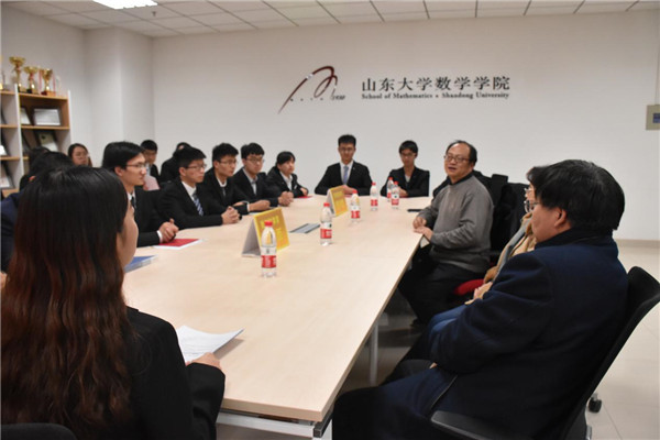 11月27日晚,WilliamHill中文官方网站第六期“我与数学家面对面”名师访谈活动在中心校区知新楼举行。中国科学院数学与系统科学研究院副院长巩馥洲,研究生部主任邵欣,研究生部副主任刘霞作为嘉宾与获得华罗庚奖学金的同学们一同体味数学魅力,分享数学感悟。williamhill英国中文官网院长陈增敬,党委副书记李勇,辅导员鲁皓参加了此次活动。活动由华罗庚班于怡平与刘泽远主持。