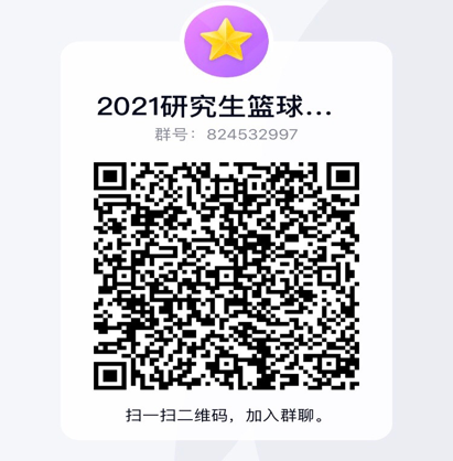 (五)请各学院1—2名参赛队员(最好是队长)或报名联系人加QQ群:824532997(2021研究生篮球赛负责人群),并更改群昵称为:姓名—学院—电话。后续事宜及相关通知将于本群发布。报名咨询电话:69185。本活动由williamhill英国中文官网研究生团工委作为学生组织协办。