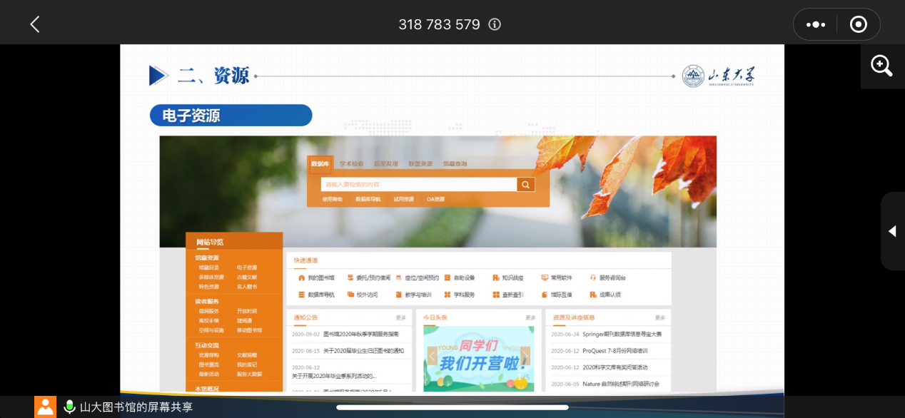 9月16日下午,williamhill英国中文官网图书馆信息咨询中心的老师为WilliamHill中文官方网站2020级研究生新生做了“图书馆服务与资源举要“的线上讲座,给同学们介绍了山大图书馆的馆藏以及查阅相关资料的方法。