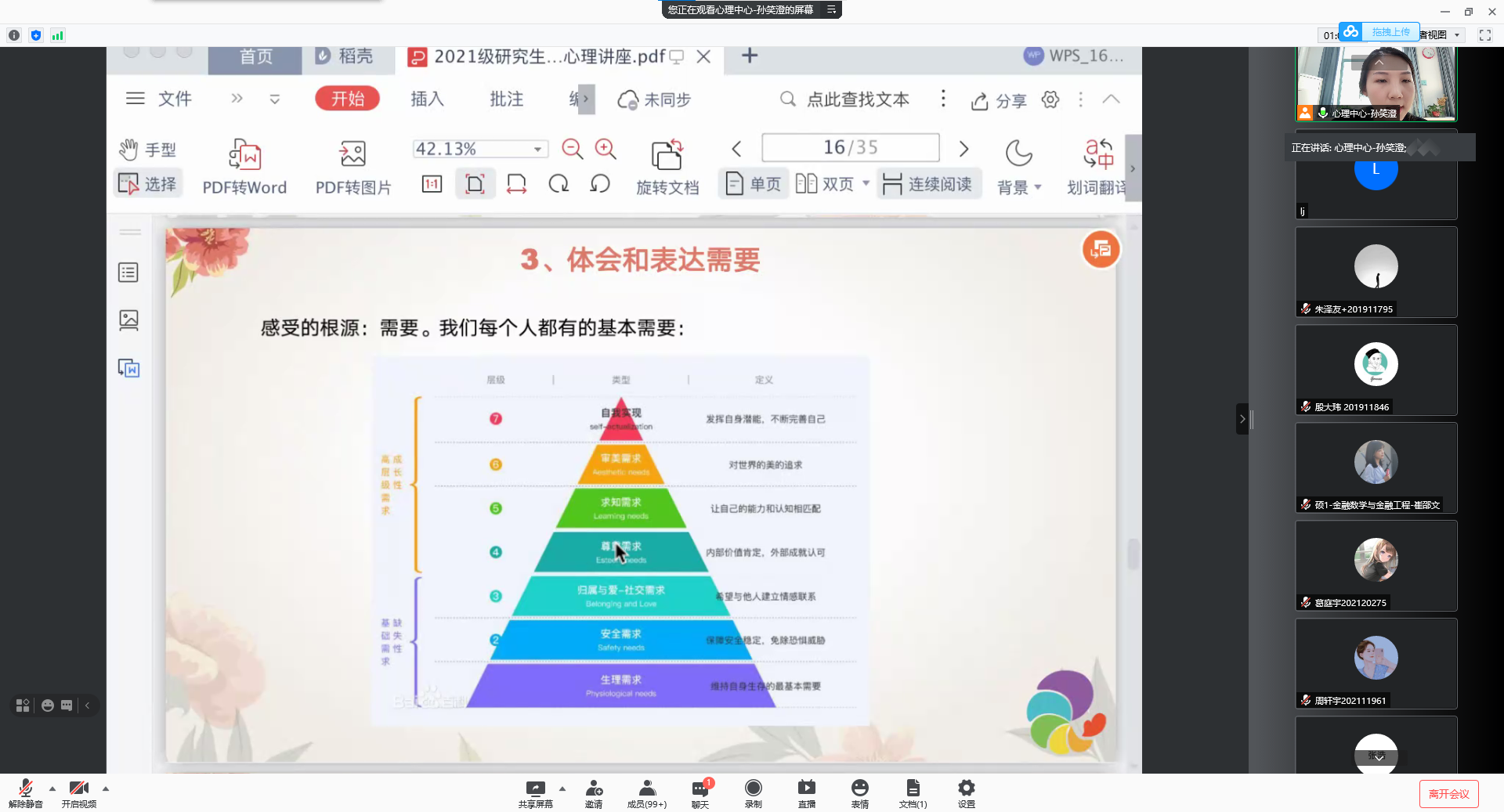 通过这次心理讲座,同学们对自身情绪认知和沟通诉求方式等有了更深的了解,学到了许多专业的心理建康知识和心理调节建议,相信大家未来的研究生生涯将伴随着一路春风与花海,顺遂起舞。