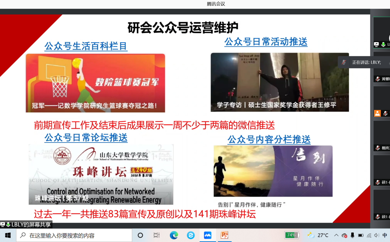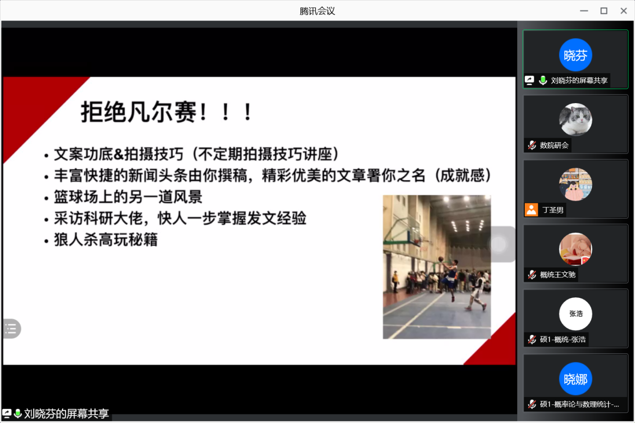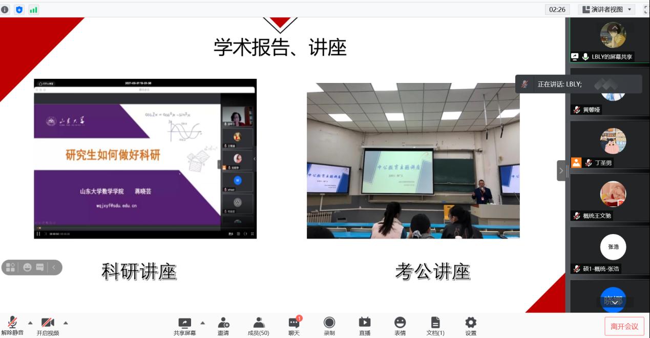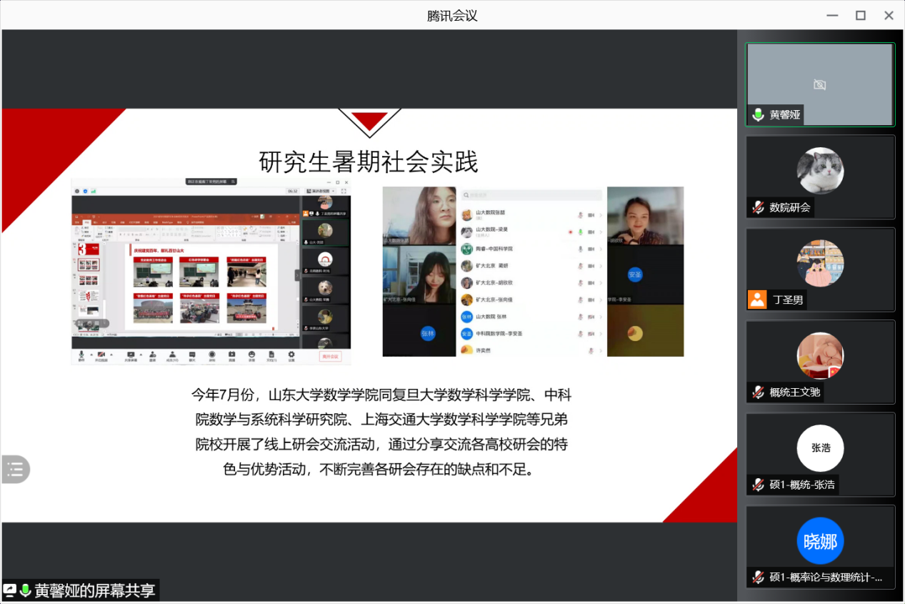 为了更好地宣传WilliamHill官网研究生会,向研会注入新的活力,2021年9月9日晚WilliamHill官网研会主席团及各部门部长通过线上会议进行了研究生会纳新宣讲。纳新对象为2021级WilliamHill中文官方网站全体研究生,宣讲会议由研究生会主席丁圣男、副主席梁昊、副主席刘洁主持。