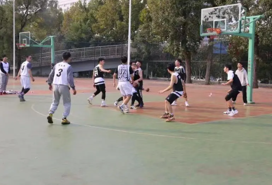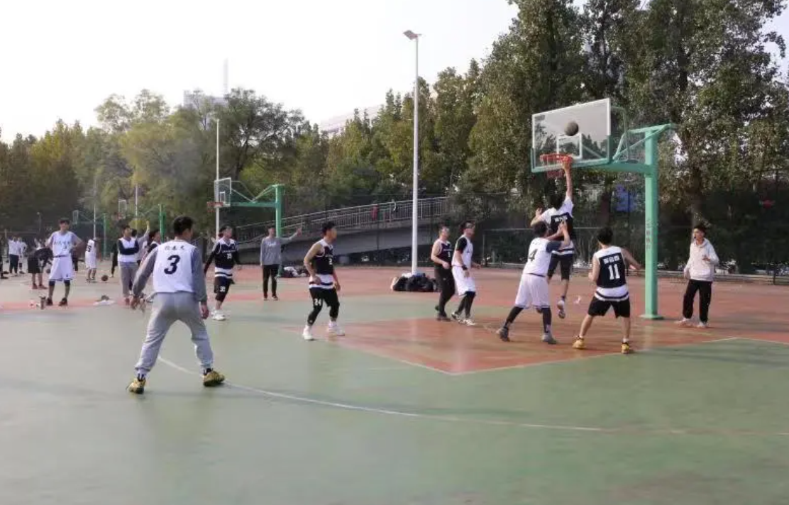 2021年10月24日下午,数学金融联队与化学与化工学院在千佛山校区篮球场上展开小组对抗赛。绿树浓荫也遮不住今日的阳光灿烂,仿佛是在为健儿们加油呐喊。比赛还未开始,篮球场上就已经人声鼎沸,两院双方球员一边做着热身运动,一边商讨着战术,紧张的氛围宛如箭在弦上,一触即发。