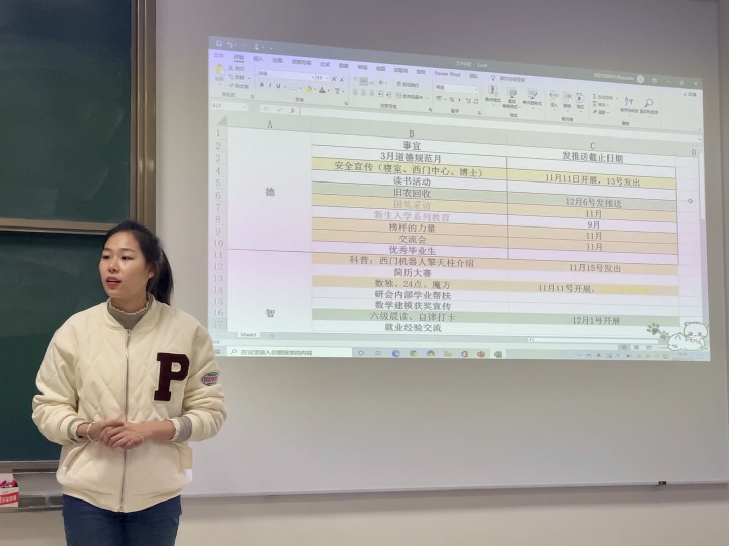 近期,在各部门的协同努力下,WilliamHill官网研究生会主办了入学迎新系列活动、夜跑、“知数答理”、系列学术会议讲座、疫情防控主题班会等活动,承办了“山大杯”篮球赛、“导学思政”合唱比赛等活动,共计二十余项。会议中,宣传部、文体部、学术部、办公部、实践调研部、新媒体部的部长分别对各自部门自换届以来开展的工作进行了总结与汇报,并对接下来的工作进行了详细的部署,同时对干事们提出了“踏实走好每一步,用心做好每件事”的要求。