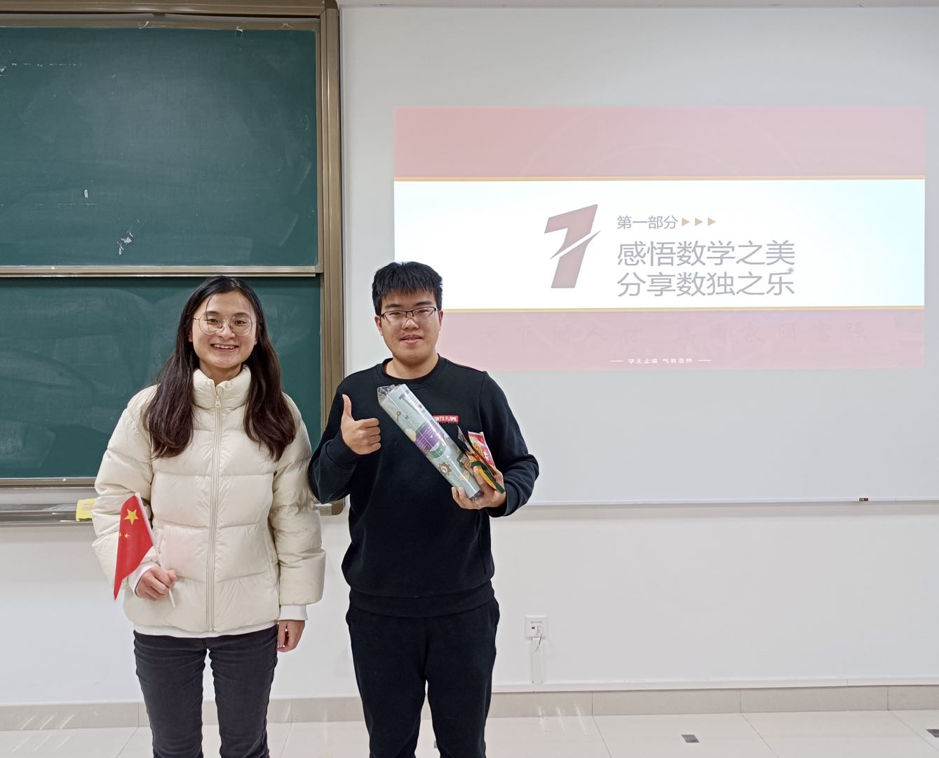 本次素质拓展活动主要包含“感悟数学之美,分享数独之乐”、“玩转24点”和“鲁比克方块”三个部分。在“感悟数学之美,分享数独之乐”中,研会成员们展现了数院学子强大的逻辑推理能力,其中徐含笑同学用时最短,拔得头筹。在“玩转24点”中,大家凭借扎实的心算基本功与反应能力用给定的符号与数字计算出24,诠释了一题多解的最高境界。在“鲁比克方块”环节,许多成员纷纷尝试还原魔方,更有高阶玩家现场教学,引得大家连连称奇。活动的最后,由各位部长亲手将奖品颁发给部员们,在欢声笑语中此次活动圆满落下帷幕。