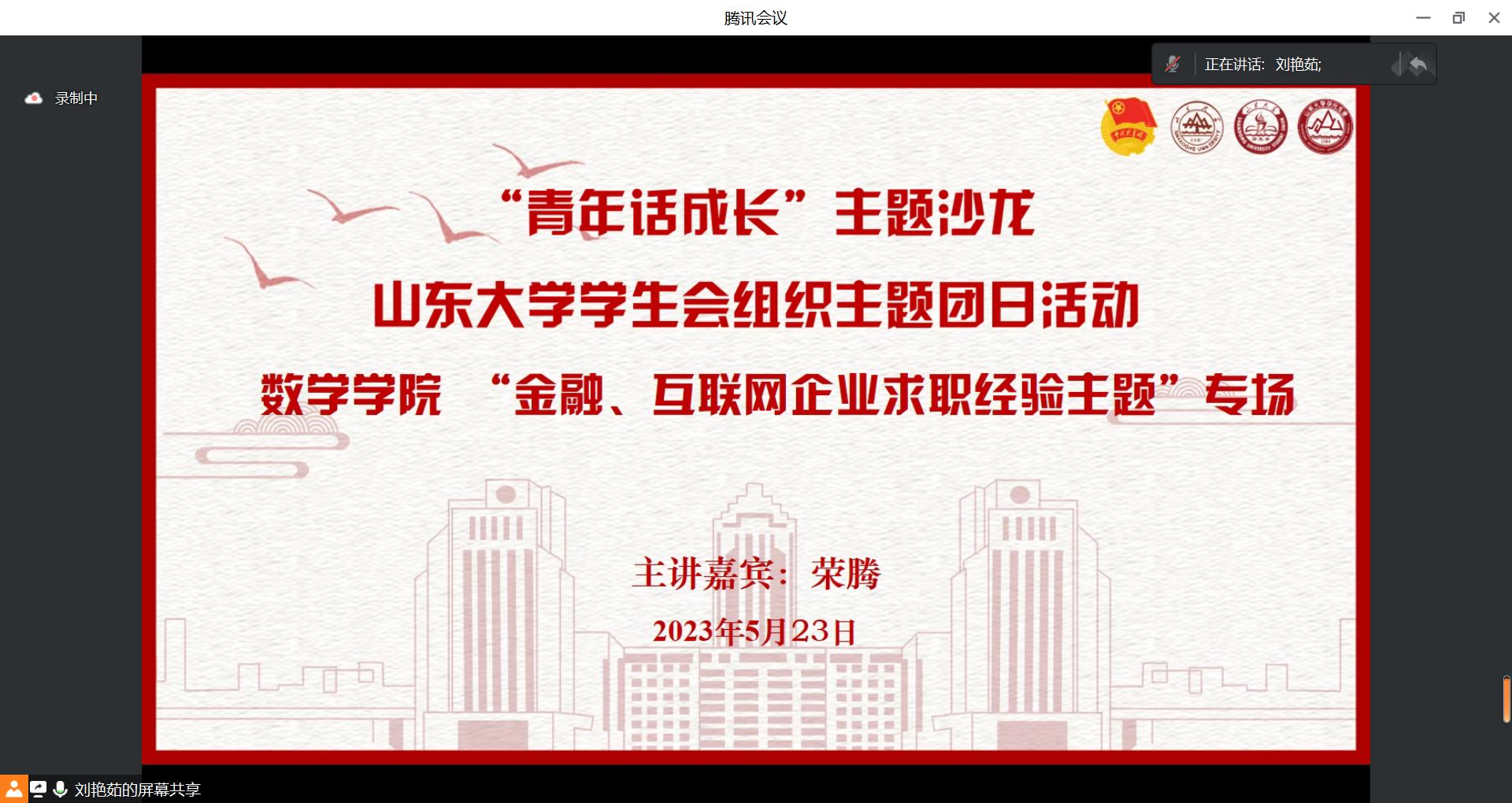 5月23日,williamhill英国中文官网研究生会功能型团支部组织开展“青年话成长”主题沙龙活动。本期沙龙活动以职业生涯规划为主题,围绕金融机构及互联网企业求职等内容,学院2020级优秀研究生代表参与交流分享,2021级、2022级部分硕士研究生参与主题沙龙。