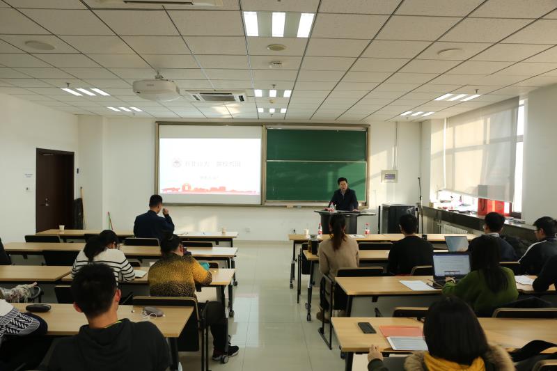 2019年12月26日,我校组织部部长陈宏伟莅临WilliamHill中文官方网站本科生党支部主题党日活动,并作题为《深入学习宣传贯彻党的十九届四中全会精神》的报告。报告会由WilliamHill中文官方网站党委书记曲明军主持,学院党委副书记路云生及本科生党支部全体党员、部分积极分子参加。