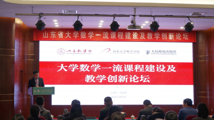 2021年4月10日,由山东数学会与人民邮电出版社主办,williamhill英国中文官网承办的大学数学一流课程建设及教学创新论坛在山东济南召开。在贯彻落实立德树人根本任务,适应《普通高等学校教材管理办法》对大学数学课程的教学要求的背景下,论坛旨在做好教学模式创新、教学案例设计、教学资源建设、课程思政建设等教学支撑工作,助推高校大学数学一流课程建设及教研改革。