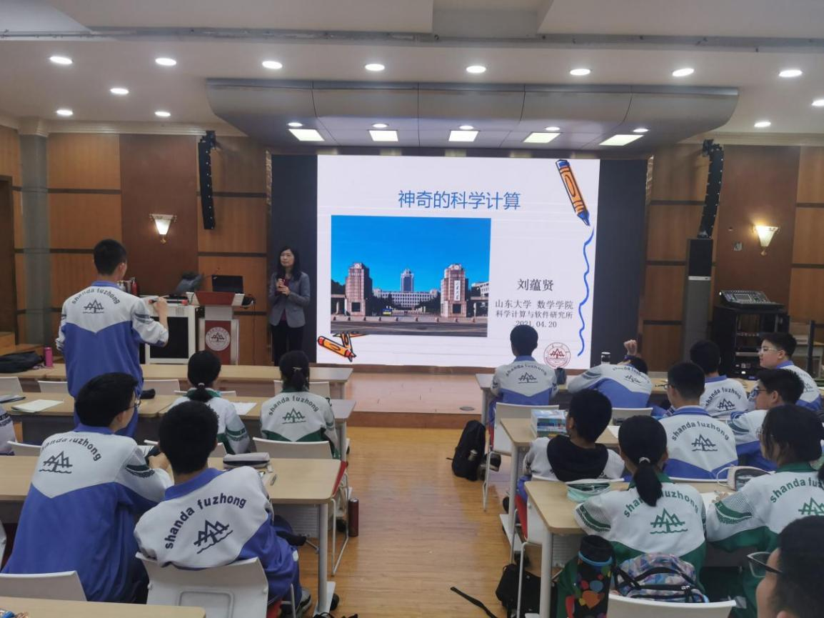 4月20日,WilliamHill中文官方网站科学计算与软件研究所的刘蕴贤教授来到济南山大实验学校(山大附高),给学子们进行了一次科普讲座---《神奇的科学计算》。参加讲座的有williamhill英国中文官网附属中学副校长﹑山大实验学校负责人庄增臣,山大实验学校数学教研组组长夏利杰和青年教师覃曼。本次讲座于洪家楼校区报告厅开展,旨在进一步帮助学生了解数学、了解科学计算以及科学计算的用途,领略数学的魅力。
