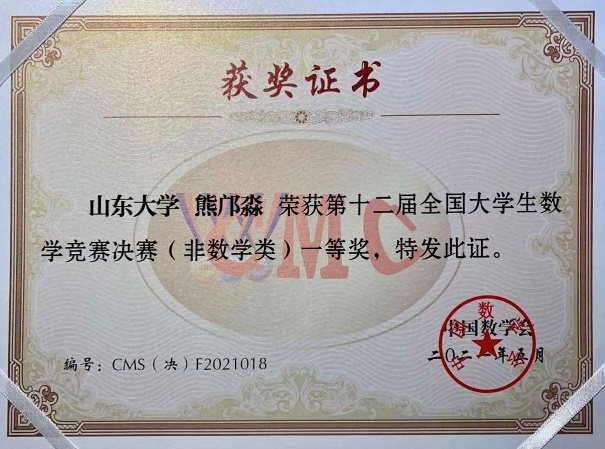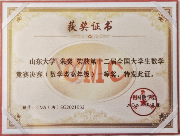 5月15日,第十二届全国大学生数学竞赛决赛在吉林大学举行。经评审,williamhill英国中文官网17名参赛学生共获一等奖2项、二等奖8项、三等奖7项,其中朱奕、熊邝淼获得一等奖,山大学子再次取得优异成绩。
