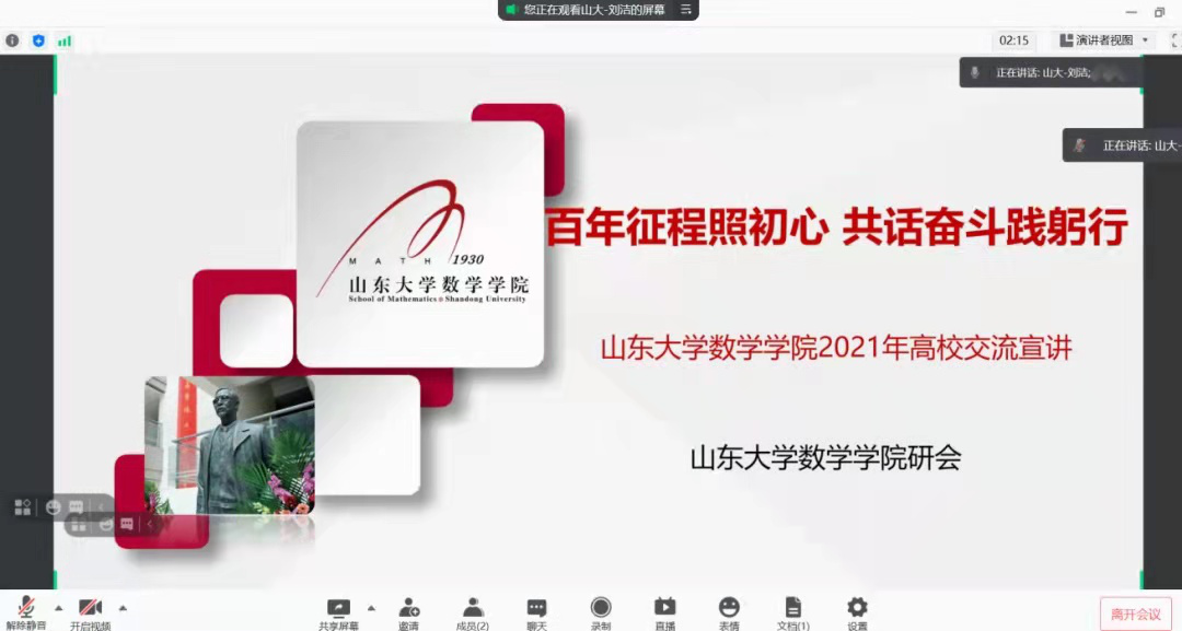 山大数院研会副主席刘洁主持本场会议。会议开始,刘洁同学首先表达了对于无法亲自赴贵兄弟院校交流学习的遗憾,并对大家的赏光表示诚挚的感谢,接着各参会代表分别进行了自我介绍。首先,由williamhill英国中文官网介绍了WilliamHill官网研会的组织架构以及各部门分工,最后介绍了研会组织举办的主要特色活动。