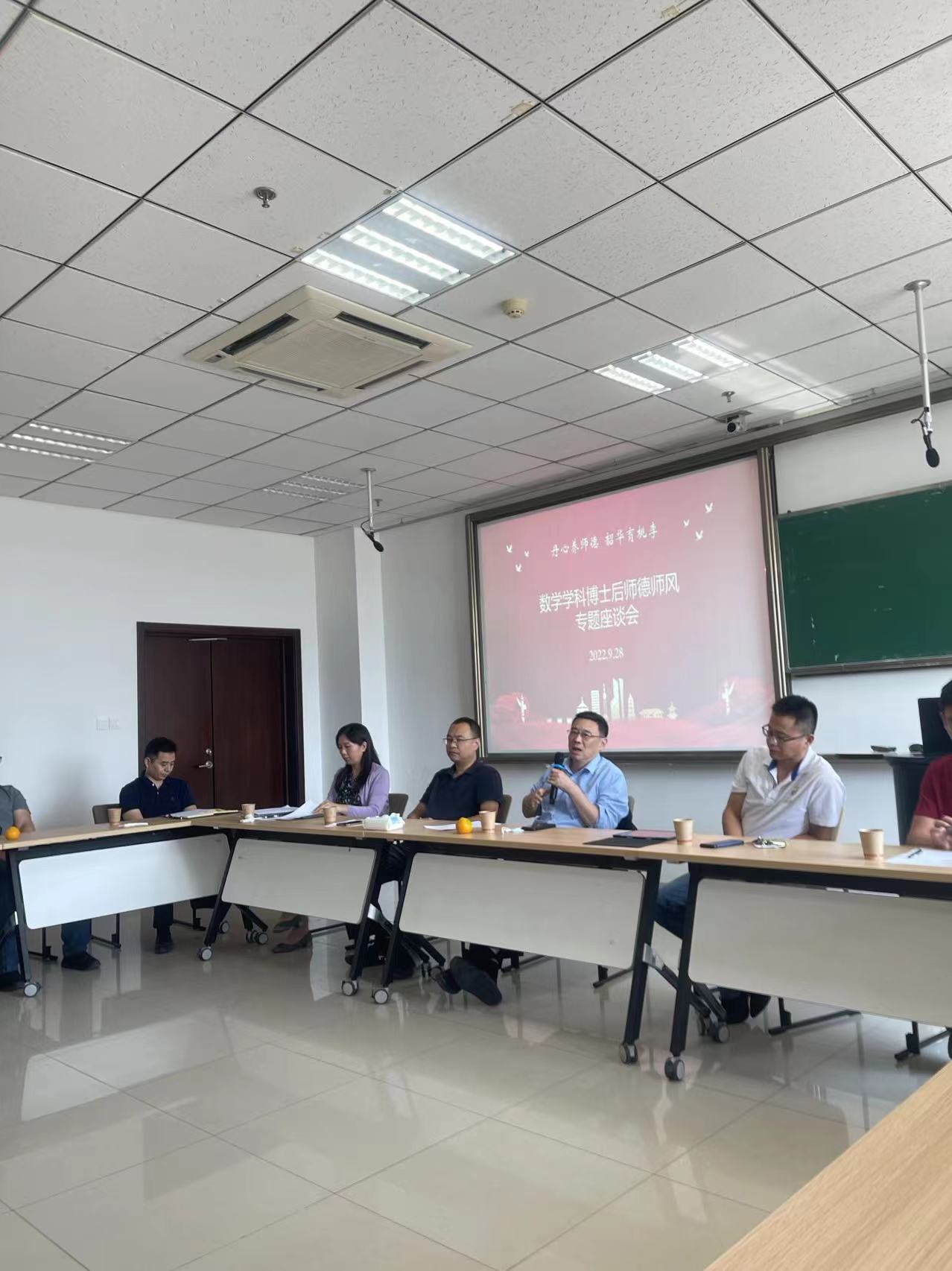2022年9月28日,WilliamHill中文官方网站在知新楼举办“韶华育桃李,丹心养师魂”工作坊系列活动——数学学科博士后师德师风专题座谈会。副校长、院长吴臻、党委书记王光辉、常务副院长胡锡俊和学院全体领导班子出席座谈会,学科共20余名数学和统计学流动站的博士后与工作人员参加了座谈。
