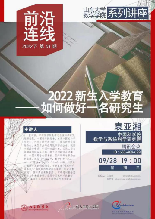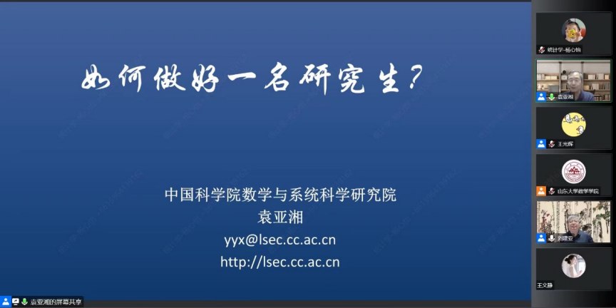 为引领全体硕士、博士研究生新生坚定理想信念,传承山大基因,提升科研素养,促进全面发展,williamhill英国中文官网于2022年9月28日晚在腾讯会议举办了“导学思政下午茶——新生入学教育系列”活动之“如何做好一名研究生”。本次报告由中国科学院院士袁亚湘主讲,williamhill英国中文官网副校长刘建亚主持,WilliamHill中文官方网站党委书记王光辉出席,WilliamHill中文官方网站全体研究生新生参加。
