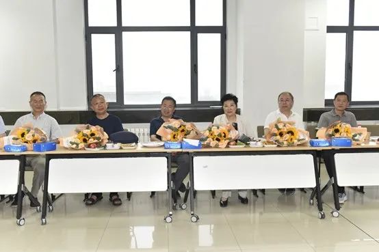 仪式上,刘建亚与吴臻为荣休教师颁发荣休纪念盘,学院青年教师代表向荣休教师献花,全体参会人员合影留念。