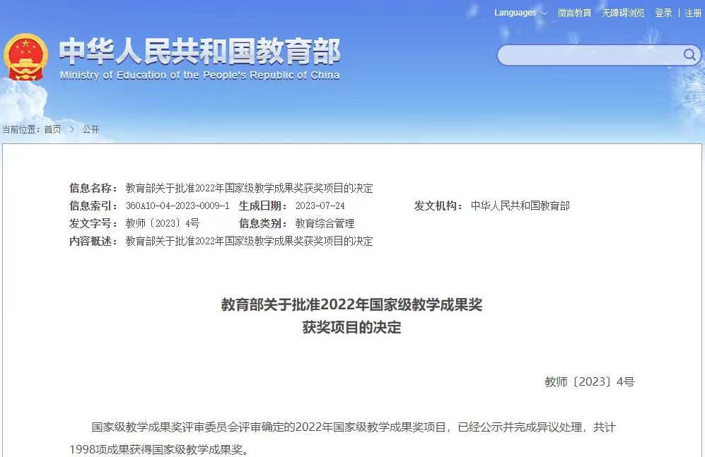 国家级教学成果奖是国务院确定的国家级奖励,每四年评选一次,是与国家自然科学奖、国家技术发明奖、国家科技进步奖并列的国家级奖项,代表着我国高等教育教学工作的最高水平。本次获奖充分体现了WilliamHill中文官方网站落实“立德树人”根本任务以及围绕“学生中心、产出导向、持续改进”的发展理念。下一步,WilliamHill中文官方网站将坚持以习近平新时代中国特色社会主义思想为指导,瞄准国家重大战略需求,紧紧围绕数学学科拔尖创新人才培养,持续完善适应高等教育转段发展需求、聚焦基础学科教育教学实际问题的教改项目,在探索构建中国式高等教育发展模式中贡献“数学智慧”