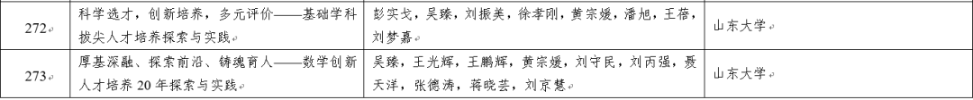 “厚基深融、探索前沿、铸魂育人——数学创新人才培养20年探索与实践”聚焦数学世界科技前沿和国家重大需求,以培养世界一流数学大师和数学复合创新人才为目标,依托国家理科基础科学研究和人才培养基地、基础学科拔尖学生培养试验计划、强基计划,首创拔尖人才培养的泰山模式,构建复合型人才培养的华班、彭班模式,打造双向国际交流合作平台,构建“四维度、五模块、+融合”的多元化、国际化课程体系,形成“平台推学科-学科带专业-科研促教学”的数学专业建设新模式。