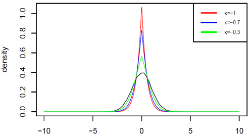 中变化的假设下,证明了其极限分布为一方差不变型非线型正态分布,具有如下形式的显式概率密度函数: