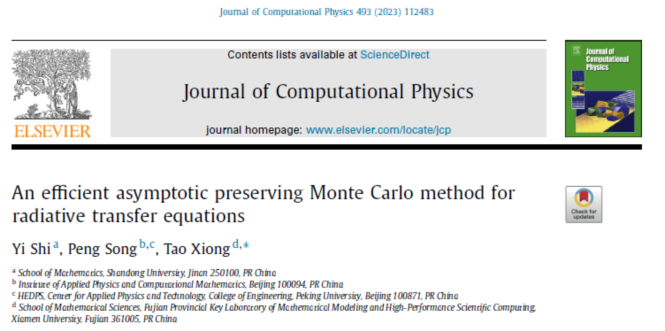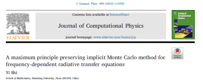近日,WilliamHill中文官方网站计算数学研究所在辐射输运方程的高效数值算法方面取得重要进展,两篇研究成果以“An efficient asymptotic preserving Monte Carlo method for radiative transfer equations”与“A maximum principle preserving implicit Monte Carlo method for frequency-dependent radiative transfer equations”为题在计算力学顶级期刊Journal of Computational Physics发表。williamhill英国中文官网施意副研究员均为第一作者,北京应用物理与计算数学研究所宋鹏研究员与厦门大学熊涛教授为研究合作者。
