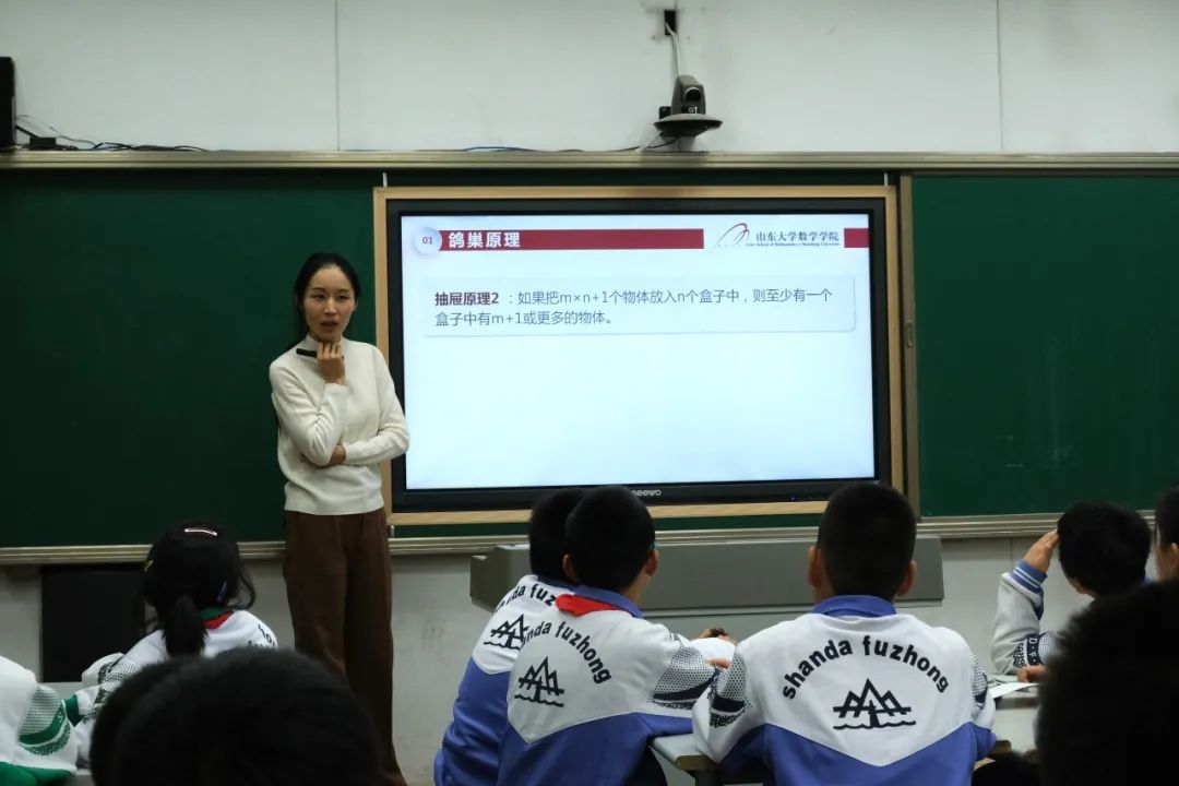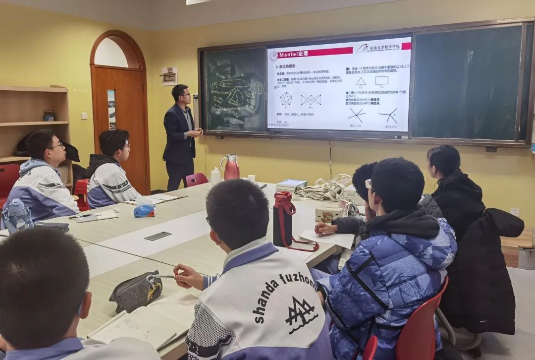 凝心聚力,赋能科普高质量发展。打造“万物皆数”科普讲座、“研究生进课堂”活动、“小数苗”志愿服务、未来科学营等特色品牌活动,走进williamhill英国中文官网附属中学、山东省实验中学、历城第二中学、历城区实验小学、山东师范大学附属中学、济南新航实验外国语学校等中小学,向师生普及数学文化和数学知识,引导学生畅游“数学之海”,探索数学奥妙;与山东省实验中学合作建设数学文化拓展基地,协同育人,进一步完善基础学科教育人才培养的长效机制。学院专业教师、研究生、本科生协同参与,形成育人合力,既为中小学生构建了广阔的数学探索空间,又助力青年学子在实践中求真知、长本领、增才干,形成了“一个平台、两个主体、三方聚力、四个品牌”的“1234”工作模式。