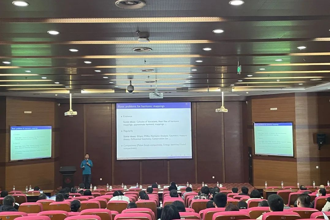 本次年会邀请院士、专家学者等,探讨数学前沿领域和热点问题。专家报告由彭实戈院士主持。张伟平院士以“从三角形到流形-Atiyah-Singer指标定理简介为题”,风趣幽默、深入浅出地带领与会师生徜徉几何学历史,介绍被誉为二十世纪数学最重要定理之一的Atiyah-Singer指标定理,寄语与会师生充分开展基础前沿研究,推进数学与物理交叉融合。李嘉禹教授以“On the Symplectic Mean Curvature Flows”为题做精彩报告,williamhill英国中文官网郭常予教授、山东财经大学李娜教授、烟台大学郑甲山教授分别以“Quantitative Stratification of the Singular Set of Harmonic Maps and Extensions”“Policy Iteration Reinforcement Learning Method for Continuous-Time Mean-Field Linear-Quadratic Optimal Problem”“Eventual Smoothness and Stabilization in a Three-dimensional Keller-Segel-Navier-Stokes System with Rotational Flux”为题做学术分享。