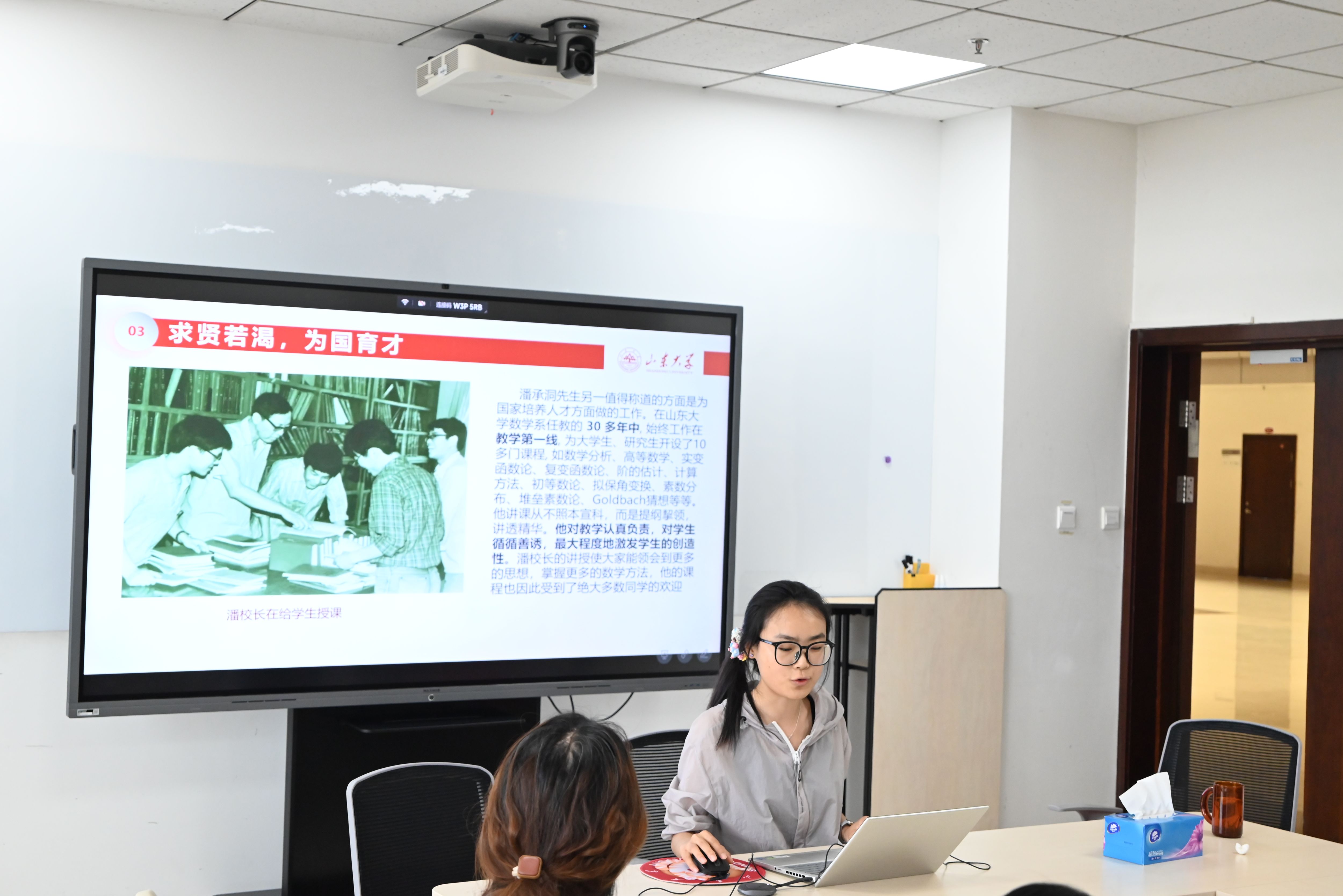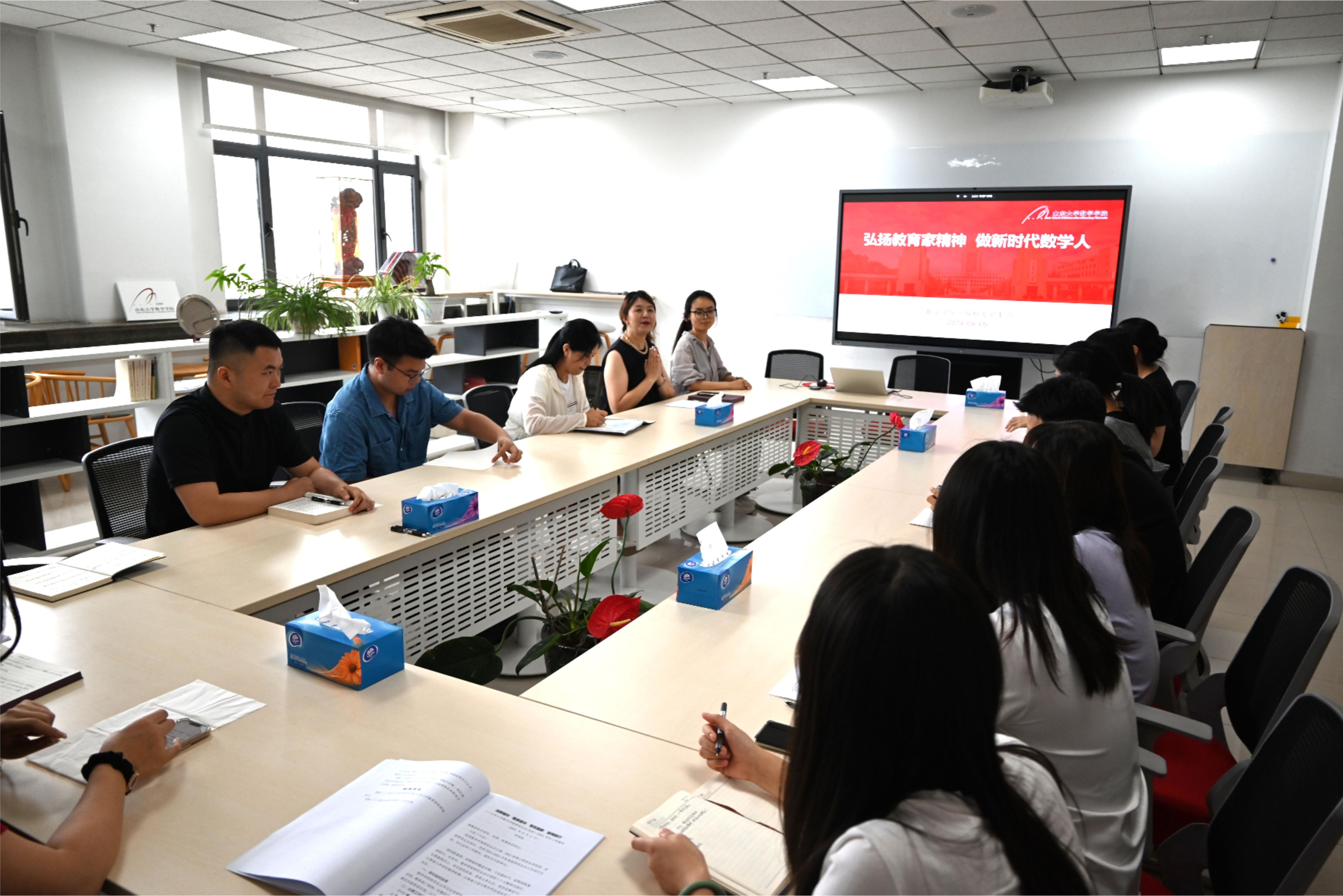 活动由行政机关党支部书记姜杨主持,分为两个阶段。第一个阶段由两位本科生支部党员张念和陈浩华带来主题报告《潘承洞——爱才惜才,大师风范》《陈景润——艰辛风雨路,砥砺攀高峰》,报告分别介绍了两位教育家的生平故事、学术成就和教育理念,两位党员还剖析了教育家精神对自己学习生活的启迪,将个人兴趣与数学发展以及国家进步的结合,表示要为强国建设、民族复兴伟业做出积极贡献。