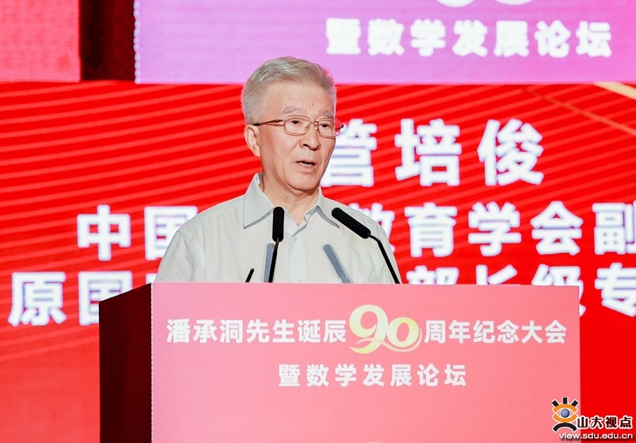 管培俊在致辞中表示,潘承洞先生是数学领域杰出的引路人,是教育领域卓越的领航者和先驱者。他深厚的学术造诣和在哥德巴赫猜想研究的两次突破,丰富了数论的理论宝库,为中国乃至世界的数学发展树立了新的里程碑,为建设中国特色、世界一流大学作出了生动诠释和重要贡献。要以潘承洞先生为镜,更加深刻认识新时代高等教育的重要战略地位和作用,把教育家精神、科学家精神转化为教育报国、科教兴国的实践动力,为推动我国教育事业高质量发展,为培养担当民族复兴大任的时代新人而接续奋斗。