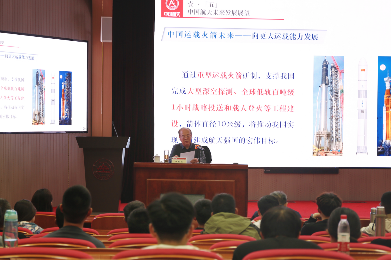 李明华围绕中国航天历史发展概况和航天精神的传承与发展,以“大力弘扬航天精神为建设航天强国不懈奋斗”为主题,回望了波澜壮阔的航天发展史,传承发扬航天人的初心使命。他强调,航天精神是航天人的创造,也是对伟大民族精神的传承,是中华民族宝贵的精神财富,包括航天传统精神、“两弹一星”精神、载人航天精神、探月精神和新时代北斗精神,这些精神在不同的历史阶段激励着航天人不断前进。