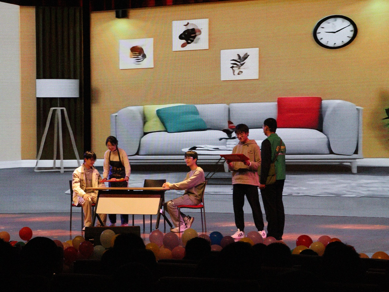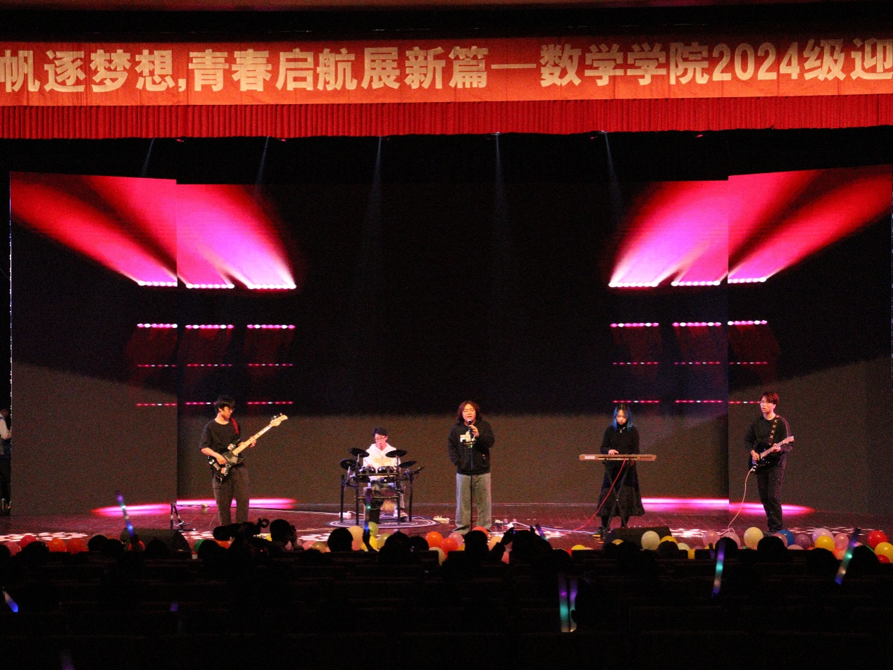 晚会以williamhill英国中文官网街舞协会带来的舞蹈《One World》拉开序幕,动感的节奏、炫酷的舞姿瞬间点燃了现场气氛。在第一篇章“群新璀璨,数海扬帆”中,数彩飞扬合唱团演唱的《我喜欢》将日常生活的温情与美好展现的淋漓尽致;快板《数星耀山大》巧妙地将数学元素融入传统艺术形式,展现了学校悠久历史和数学人的风采智慧;话剧《成人礼》通过生动的表演,讲述了大学生从青涩走向成熟的心路历程;本科新生辅导员张枫林深情演唱的《父亲写的散文诗》,诠释了父爱的伟大和温暖。