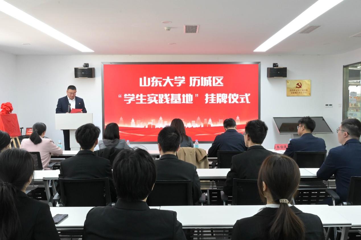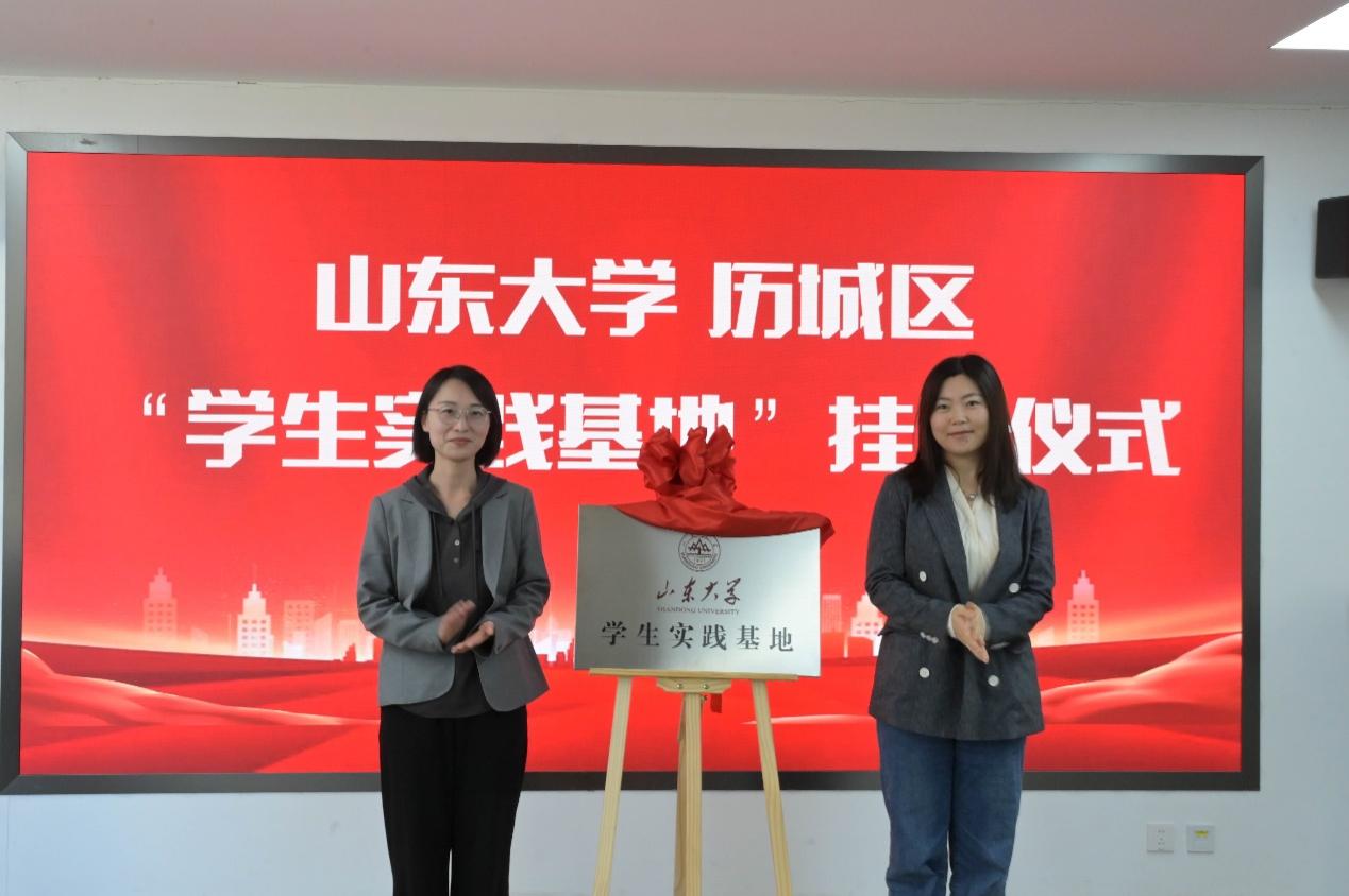 近期,williamhill英国中文官网与港沟街道于融创文旅城溪山居社区党群服务中心举行“williamhill英国中文官网学生实践基地”揭牌仪式。williamhill英国中文官网团委副书记郑柔澄,WilliamHill中文官方网站党委副书记张艳强,历城区团委副书记王超慧,港沟街道党政办公室副主任、团工委书记张琪琦出席活动。