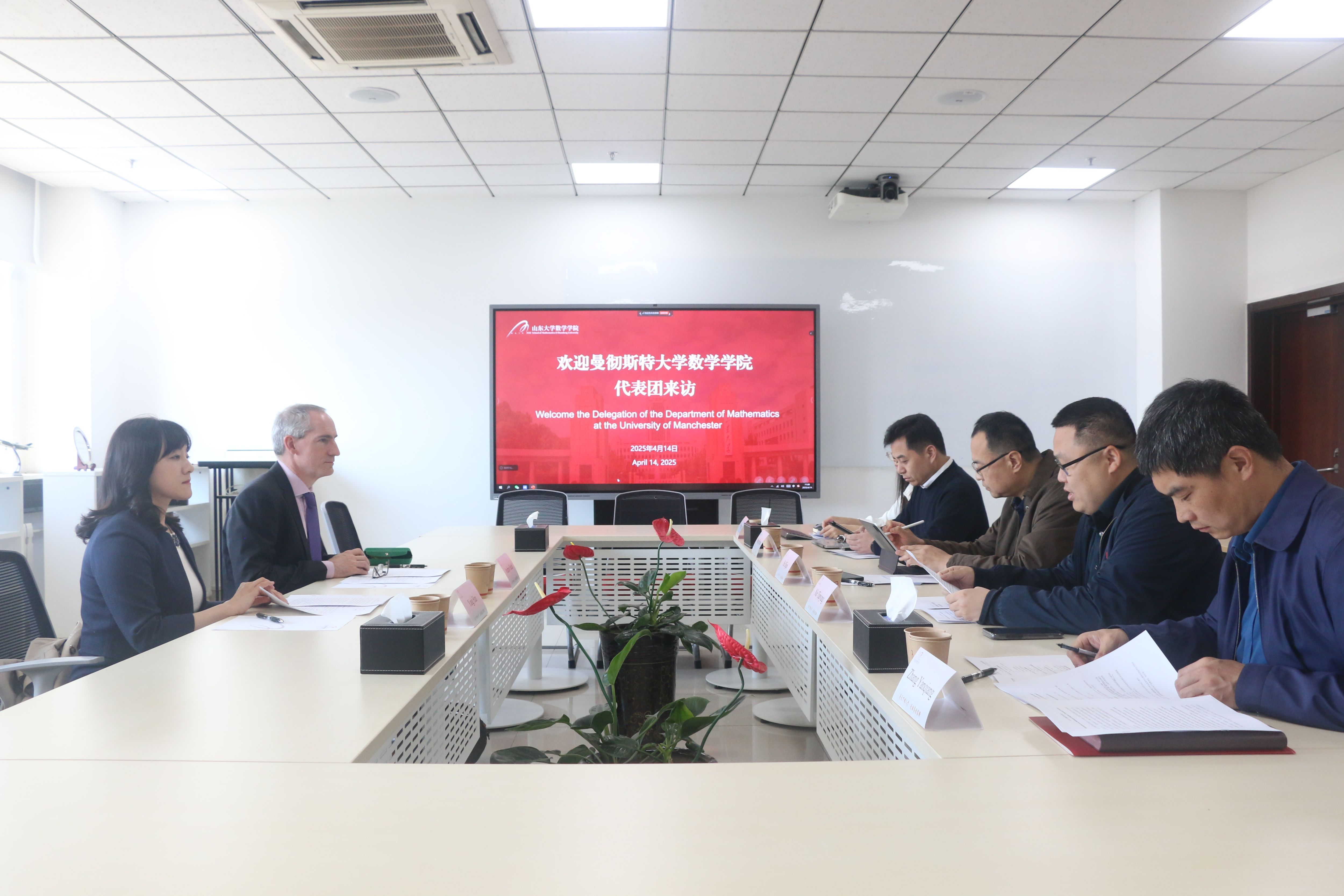 4月14日,曼彻斯特大学WilliamHill中文官方网站院长Andrew Hazel教授、统计学博士生导师Yang Han副教授访问williamhill英国中文官网。WilliamHill中文官方网站常务副院长胡锡俊,副院长聂天洋、王鹏辉,党委副书记张艳强,数学与统计学院副院长亓兴勤、党委副书记王鹏飞参加工作座谈。