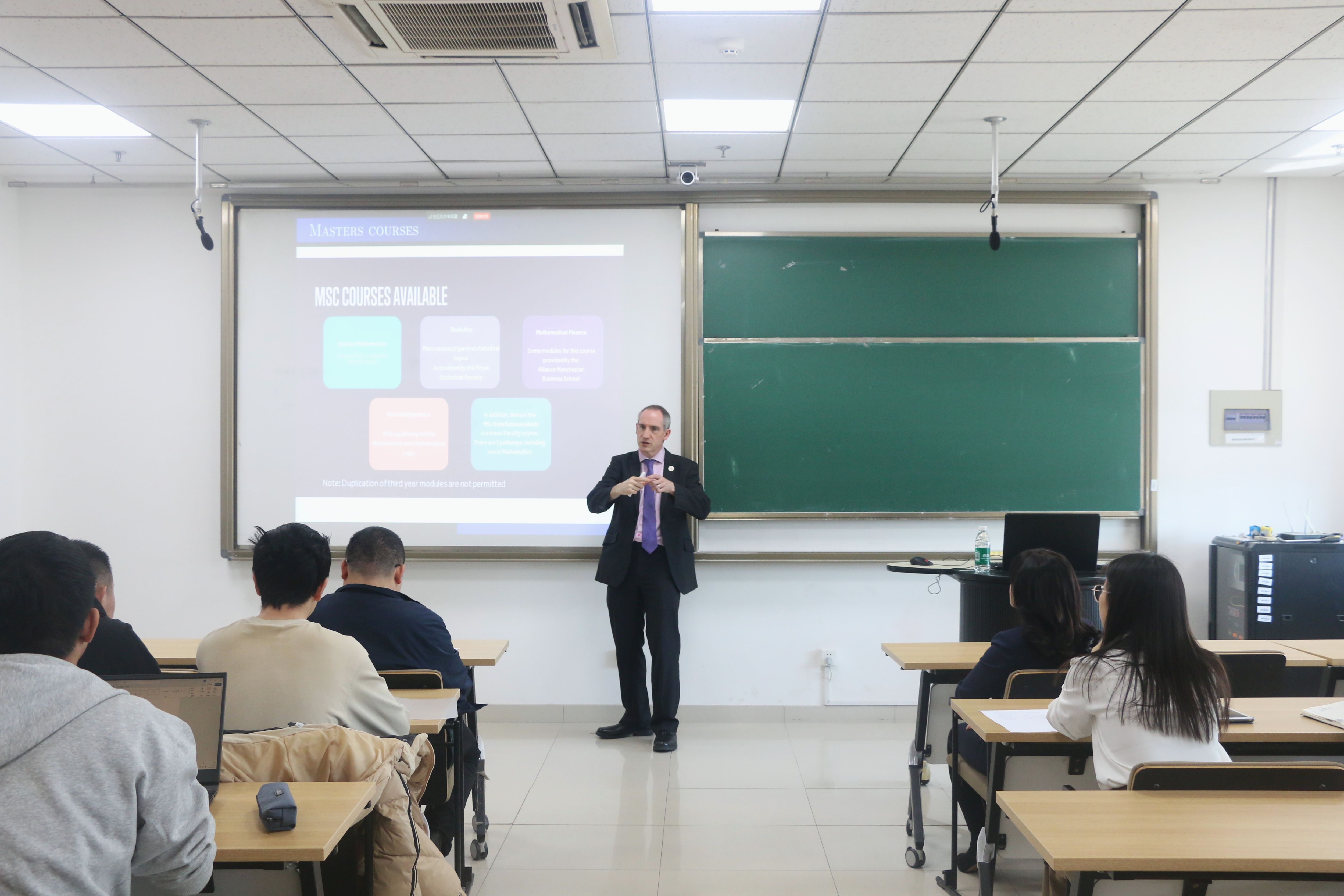 会后,曼彻斯特大学与williamhill英国中文官网“2+2”双学位联合培养项目宣讲会在WilliamHill中文官方网站成功举办。Andrew Hazel和Yang Han为与会师生详细介绍了曼大历史、曼大WilliamHill中文官方网站的学科实力和“2+2”项目信息,并在答疑环节针对项目录取条件、生活成本等问题进行耐心解答,现场反响积极。宣讲会采取线上、线下相结合的形式,WilliamHill中文官方网站、数学与统计学院领导班子成员、相关工作人员和学生代表参加会议。
