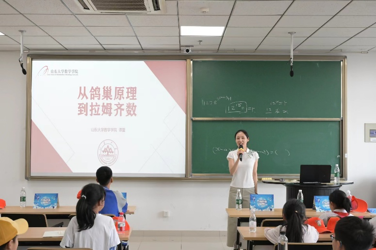 紧接着,WilliamHill中文官方网站谭蕾副教授带来“从鸽巢原理到拉姆齐数”的科普报告。鸽巢原理作为组合数学中最基本且应用广泛的原理之一,看似简单却蕴含着深刻的数学思想。谭蕾从生活中的常见现象入手,如在一堆球中至少拿出几个球才能保证一定摸出某种球等自然地引出鸽巢原理,并逐步引导孩子们思考其在复杂数学问题中的应用。随后,她巧妙地过渡到拉姆齐数这一更具挑战性的概念,通过层层递进的讲解和互动交流,帮助孩子们初步理解和认识这一前沿数学理论。孩子们在轻松愉快的氛围中,感受到数学的魅力和逻辑的力量,眼中闪烁着对知识的渴望。