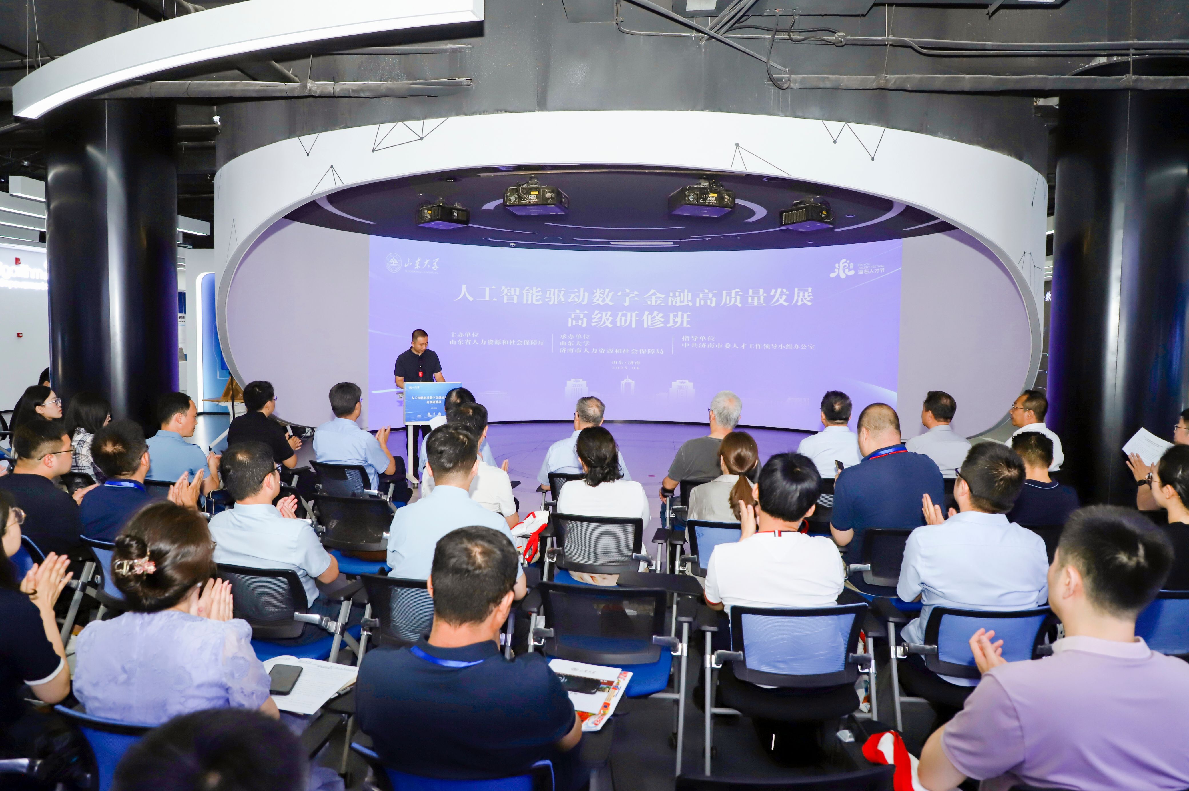 本届人工智能驱动数字金融高质量发展国家级高级研修班为期5天,作为济南市第三届“海右人才节”系列活动之一,经人力资源社会保障部批准,由山东省人力资源和社会保障厅、中共济南市委人才工作领导小组办公室主办,williamhill英国中文官网、济南市人力资源和社会保障局承办。来自全国科技金融领域金融机构、企业的相关负责人及中、高级专业技术骨干50余人参加研修学习。高研班立足人工智能这一热门领域,探讨AI时代下金融行业发展的数字化实现方向与路径,对支持引领数字金融高质量发展、培养高层次专业技术人才队伍、推动新质生产力发展具有重要意义。
