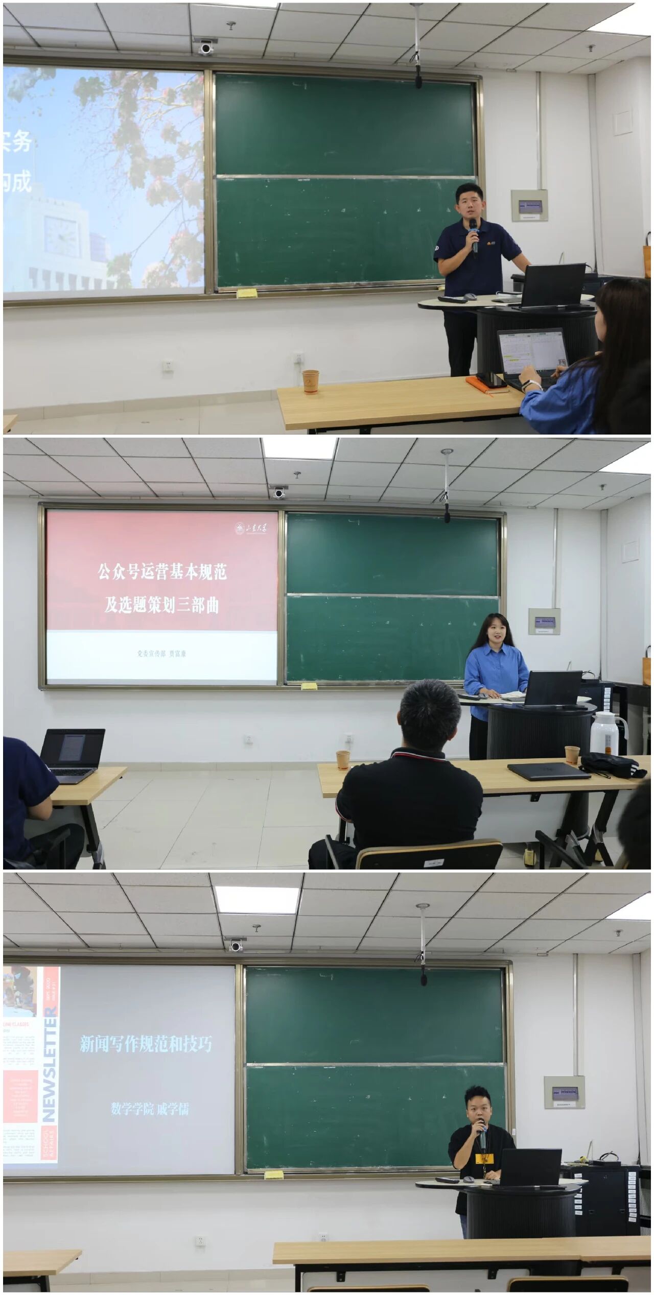 张艳强指出,2025年是贯彻全国教育大会精神、落实教育强国建设规划纲要的关键之年,要善用学科语言展现数学之美,实现专业与宣传的深度融合;要多听多问、多练多试,宣传工作者应从记录身边的学习生活小事做起,锤炼发现新闻与文字表达的真功夫;要多想多悟,去科研一线和育人一线深挖新闻富矿,提升策划与担当意识,传播校园正能量。