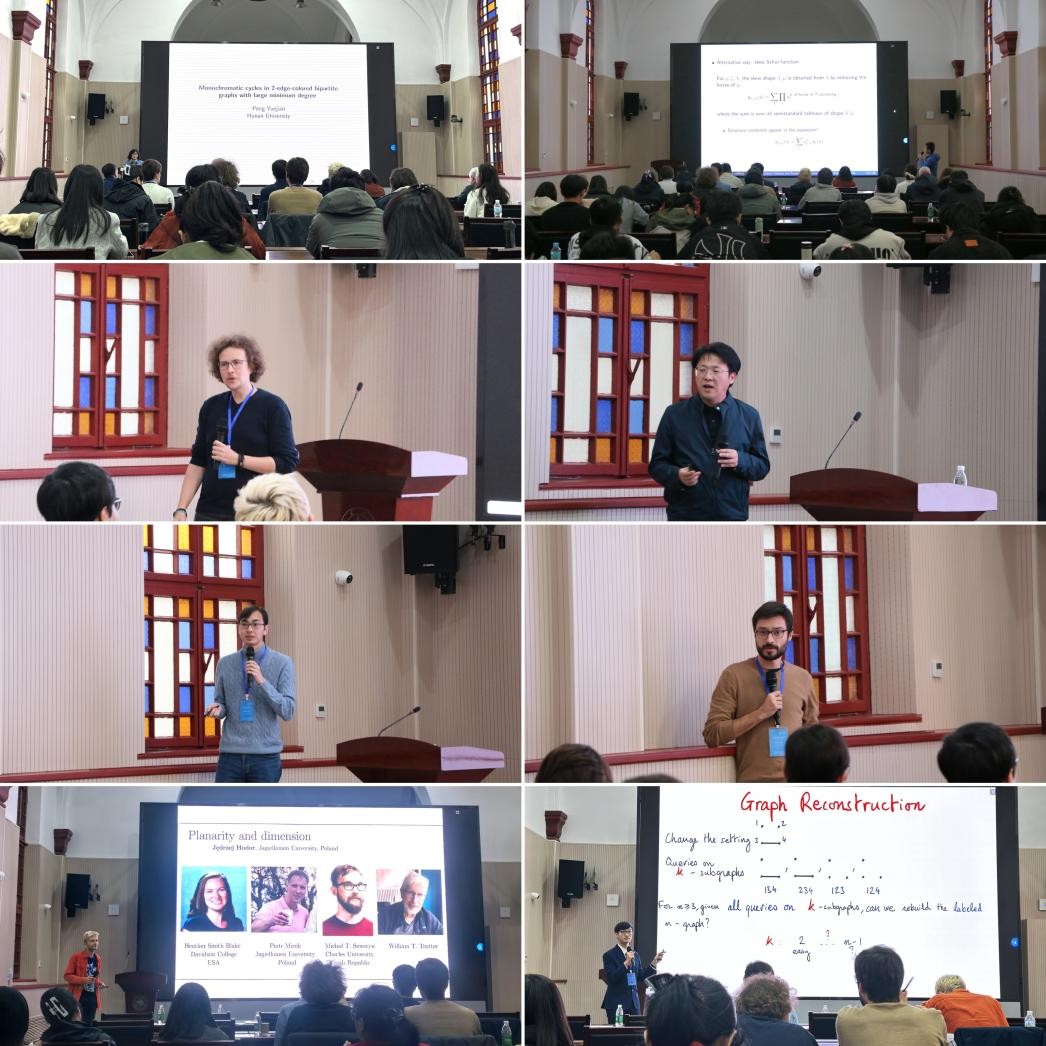 开幕式结束后,会议围绕图论、组合数学、算法理论及应用等领域开展多场学术报告。湖南大学彭岳建教授,南开大学郭龙教授,中国科学技术大学马杰教授,williamhill英国中文官网杨东雷教授、上官冲教授,巴黎萨克雷大学François Pirot副教授、Hoang La副教授、Quentin Chuet博士,里昂第一大学Théo Pierron副教授,牛津大学Paul Bastide博士后研究员,特拉维夫大学孔祥粱博士后研究员,华沙大学Julien Duron博士,雅盖隆大学Jędrzej Hodor博士等分别作专题报告分享研究成果。此外,会议设置问题分享、分组研讨、进展汇报环节,参会学者围绕核心问题与猜想展开集体研讨交流,为相关前沿研究拓展了新的思路方法。