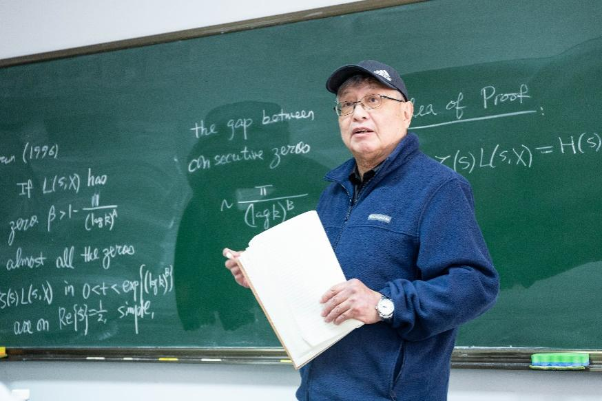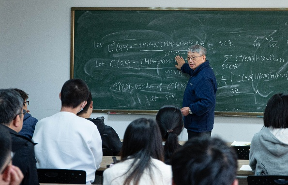 张益唐教授首先回顾了素数分布的研究历史,并推导了欧拉求和公式;深入解析了算术级数中素数分布与狄利克雷L函数零点特性之间的关系,进而阐明了Landau-Siegel零点问题与广义黎曼猜想之间的联系。随后,他从Dirichlet的经典研究切入,梳理了零点问题的发展脉络,明确了研究的基础前提,厘清了其与广义黎曼猜想的区别,并重点剖析了西格尔定理中“常数无效性”这一核心难题。张教授聚焦问题的本质,系统梳理了研究路径,介绍了Heath-Brown在相关理论中的最新贡献,并结合实例说明了该问题与数论其他核心领域的深刻关联,指出研究已实现从定性分析到定量估计的重要转化。最后,他阐释了该零点问题在数论中的关键意义,聚焦于“若存在接近1的实零点,能否导出矛盾”这一核心命题,分享了关键结论与技术细节,并鼓励师生打破传统方法的束缚,勇于挑战这一难题。讲座期间,张教授还耐心回答了师生们的提问。