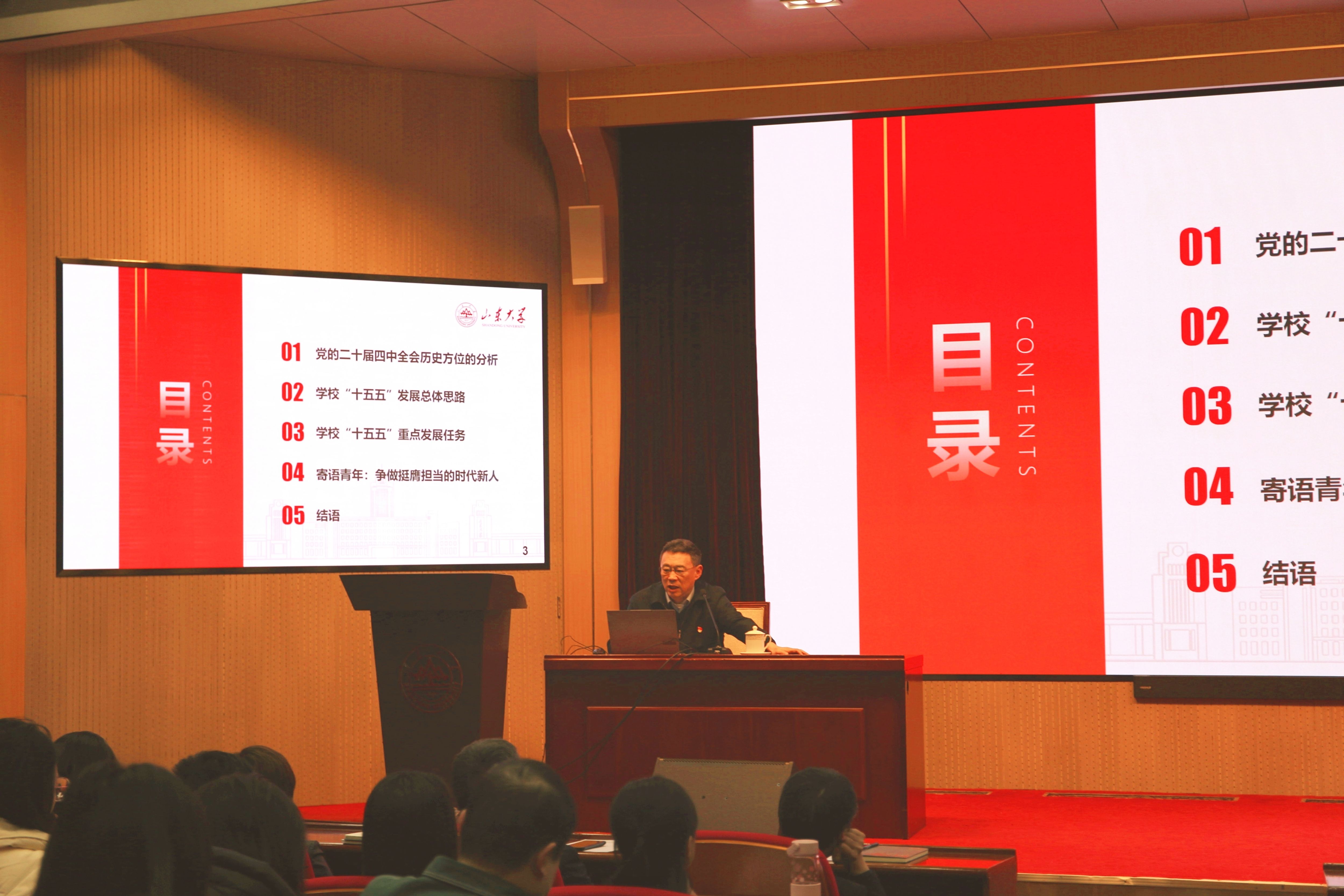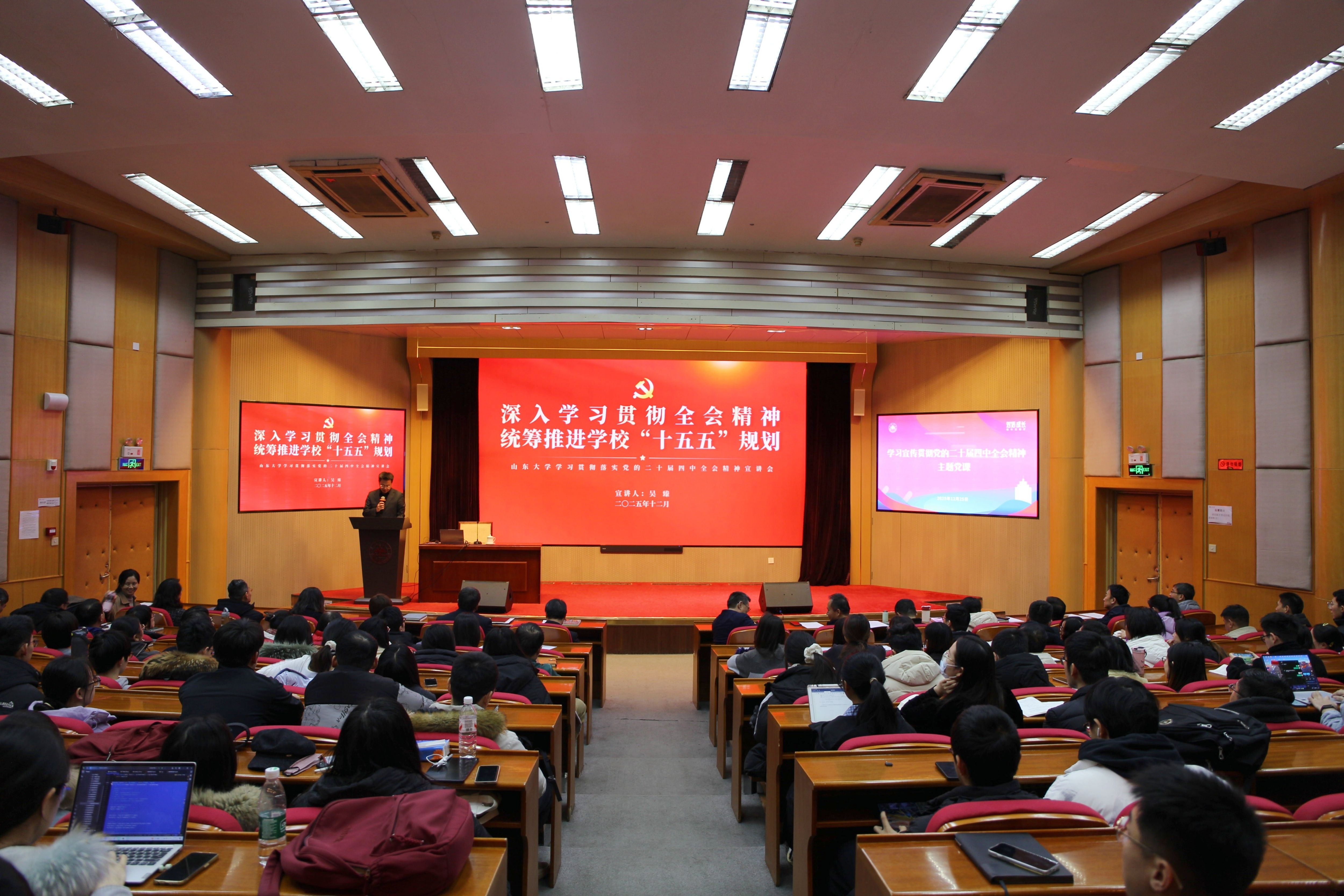 12月25日,williamhill英国中文官网常务副校长吴臻在中心校区为党委教师工作部、人事部、发展规划与深化改革部、泰山学堂、数智化支撑研究院、WilliamHill中文官方网站师生宣讲党的二十届四中全会精神。