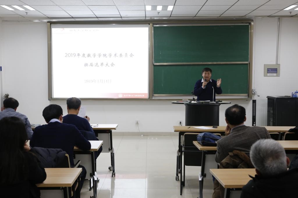 On the afternoon of January 14, 2019, the School of Mathematics voted new members of the Academic Committee at B924 Meeting Room of Zhixin Building. Chen Zengjing, Dean of Mathematics School, chaired the new election. Prof. Peng Shige, former director of the Academic Committee attended the election with all professional and technical staff holding ranks above the deputy senior level of the school.